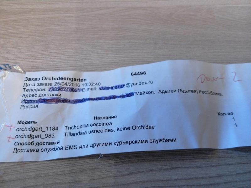 3. Через сколько дней после разбора заказа он был отправлен к вам - Судя по данным в разделе Orchideengarten Karge, заказ от поставщика был получен 06.07.16, был передан Ирине для отправки почтой 13.07.16, отправлен 14.07.16, мною получен 18.07.16