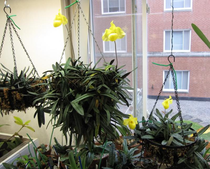 Tatyana_sc, Таня, Целогина скорее всего одна, она очень быстро растёт.Я её и завела ради такой клумбы.Только ей постамент придётся ваять.У меня за год два прироста даёт, в этом году пересадила. Где то ещё видела домашнее цветение каттлеи тоже тазик.