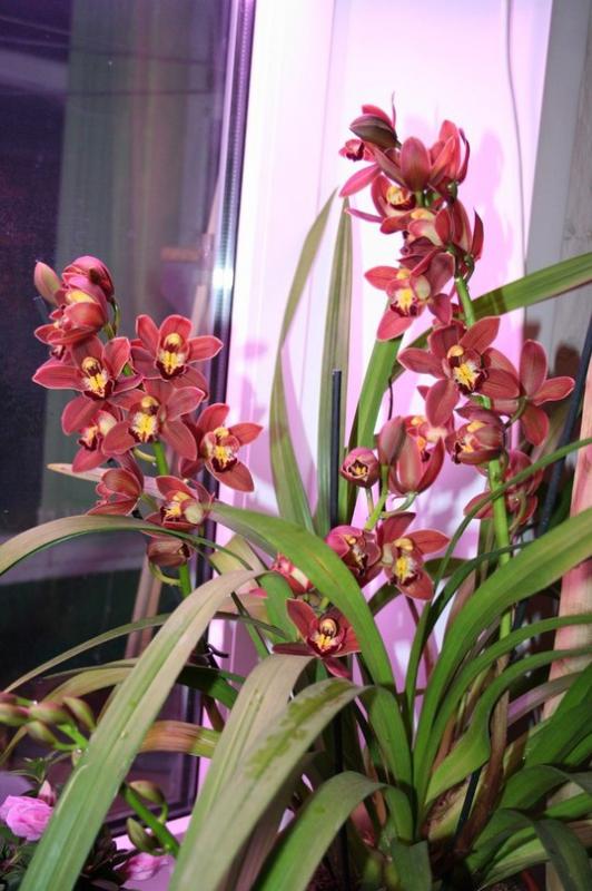 Может кому поможет))) Лет 5 назад купил цимб без названия, адаптировался быстро, через год процвел 4 цветоносами, потом родился сын и я вообще забил на орхидеи на 4 года, какие выжили, те на бронепоезде)цимб среди них, рос и цвел, 1-2 цветоносами, но цвел, разросся до 18 бульб, короче, условия: зима-окно за южным балконом, досветка лампами флюора Осрам, t 18-22 у окна, как только ночные не опускаются ниже +5, на балкон за жалюзи до осени(вчера только занес), полив раз в неделю под душем и замачиваю минут на 20, очень хорошо реагирует на органику, например коровяк, 100 гр на таз),