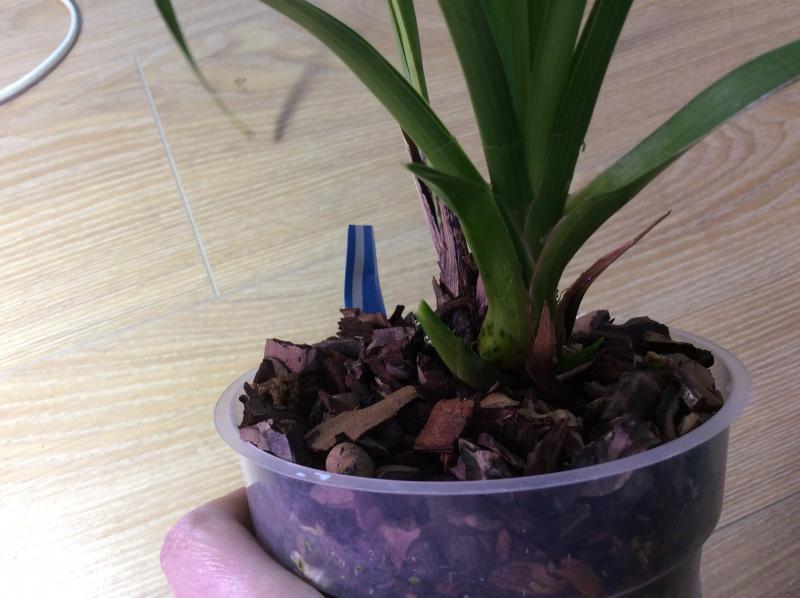 loiste, дело в том, что палочки у моих цимбов вставлены в середине корневого кома, там, где грунт от производителя и корни). А мой грунт только по краям. В дырявом по краям просыхает, а в середине медленнее. А в черном моего грунта фактически нет, только сверху чипсами корни прикрыла. Он вообще в пустой горшок вставлен, а палочку я вставила на место той палочки, которая держала цветонос, в центр кома.