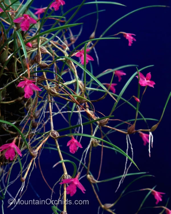 На верхушке каждой псевдобульбы появляется только один прямостоячий, игловидный, желобчатый лист длиной 2.5–7.5 см.