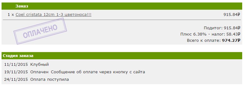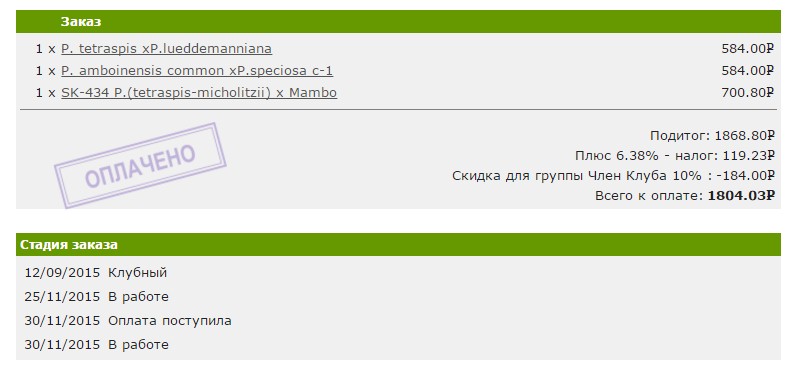 Продам заказ от Chuang. На данный момент заказ оплачен, статус "В работе". В заказе вот эти растения: