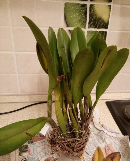 Nussel, я бы поступила как Tory27, собственно я так и сделала в июне , когда пришла практически такая же катлея , как Ваша. корни катлея нарастит, на живучее растение.