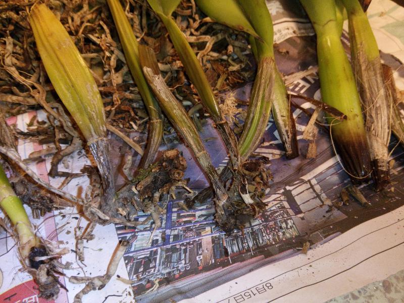 Nussel, вот эту зелёненькую поставьте на керамзит , привяжите её к опоре, попробуйте отрастить корешки, я думаю шанс есть.В качестве горшка возьмите прозрачную баночку от йогурта, не больше. Но сразу скажу , что это дело не быстрое... Состояние листа вам будет говорить о растении, единственное на что можно ориентироваться. вообще катлеи живучие, без воды могут находиться до 24 часов. воду я бы наливала только в поддон, а с верху опрыскивала. Остальные пока не выбрасывайте, если отвалятся листы, а пеньки будут более менее на вид, их тоже поставьте в керамзит.