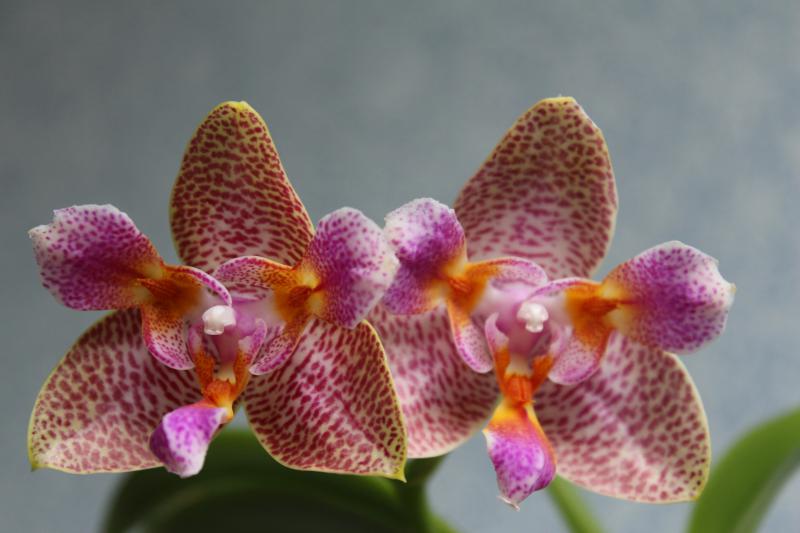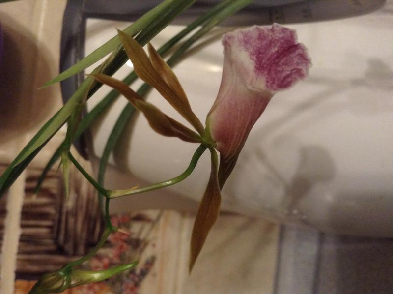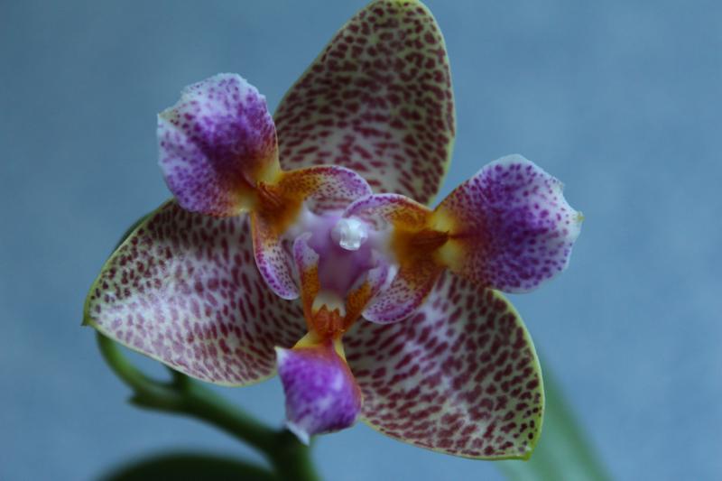 phal. GW458 (кстати, а никто не в курсе, он какое-нибудь осмысленное имя получил или, как узник, по-прежнему под номером числится?) в полном роспуске - 3 цветочка. Второй и третий поярче получились, а третий так ещё и кучерявится немного. Наверное, хотел пелориком заделаться, да передумал