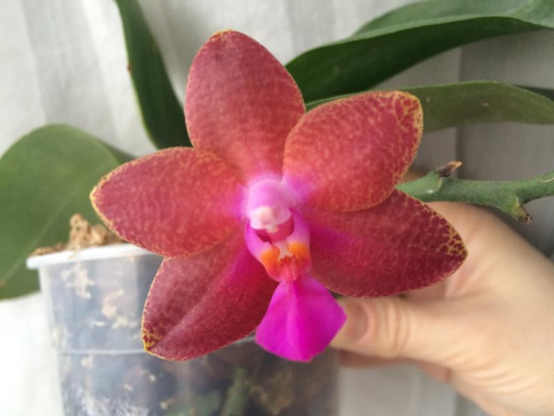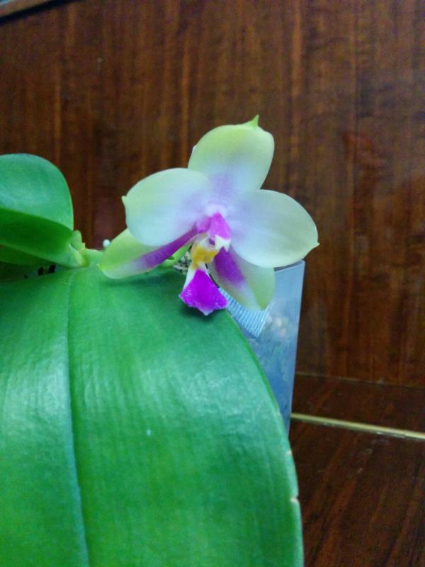 Цветёт Phalaenopsis Fusheng's World 'FS' пока только одним цветочком . Это первое домашнее цветение . Пахнет лилиями довольно сильно .