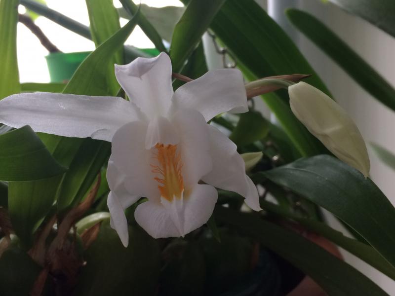 Начинает открывать бутончики Coelogyne cristata. Запаха нет пока . Желтенькие усики очень милые .:girl_in_love: