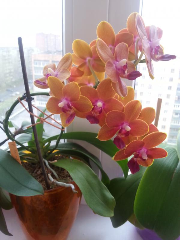 еще рыжик Rth. (Blc) Young-Min Orange Golden Satisfaction(Rth. Viola Nugget x Ctt. Trick or Treat) http://passiflora.ru/product_info.php/products_id/146880 эта чудесная каттлейка пришла с обрезанными корнями, но с чехлом и, отрастив за лето корни, процвела даже под люмками.