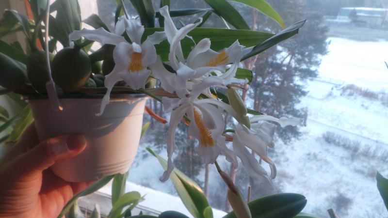 Хабенария пришла в качестве замены от Parin Orchids, притом с досылом. Ну труп трупом!Эх, раз деньги уплачены, сунула в смесь торфа с корой и забыла. Так она до августа и пролежала без движения, а потом вдруг ожила ни с того, ни с сего. Осенью я её поставила под подсветку, вроде ей спать пора было, а она всю зиму зелёная простояла. Весной все в рост- а она стала буреть, засохла- и опять в спячку до середины лета. Потом опять в рост, а в декабре два бутончика проклюнулись. Стоит на окне возле стекла, без подсветки, с редким поливом, но ей похоже, нравится. Странная барышня!