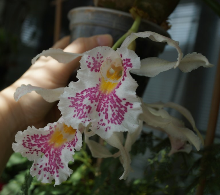 Шикарный! На цимбидиум похож. Если не секрет, где такой можно найти?Дендробиум японский безымянный. Очень нравится, фарфоровый просто.