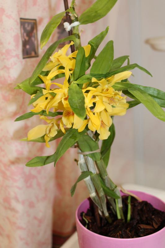 Мой дендрик нобиле гибридный из уценки зацвёл. Оказался жёлтым. И никак позировать не хочет. Но он мне всё равно очень нравится! Умничка, всего 6 мес. назад отцвёл в магазине, и сейчас снова цветёт.