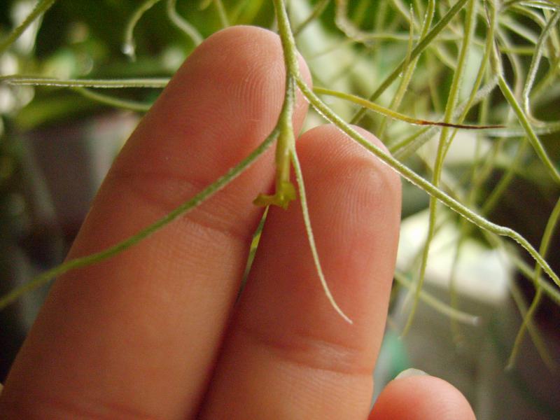 Поливала - рассмотрела! Зацвела Tillandsia usneoides Normal Form (получена в октябре 2014г. от Phuphaman). Нормальных фото не получается, цветочек больно мелкий. Но всё равно настроения прибавил! S8000242.jpg