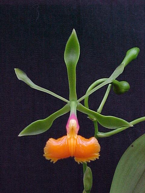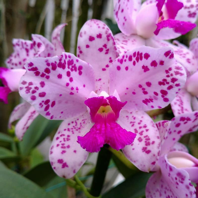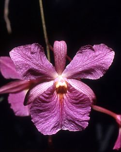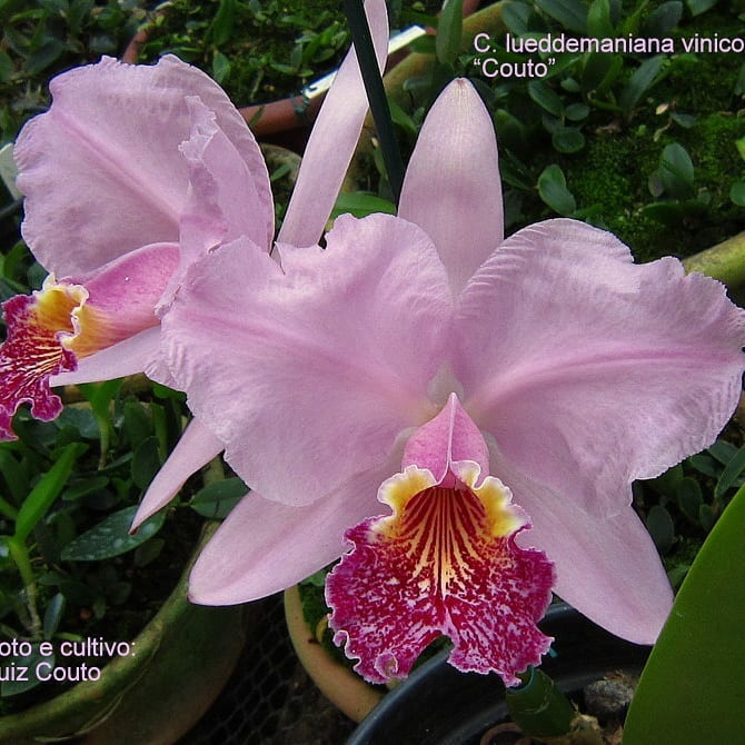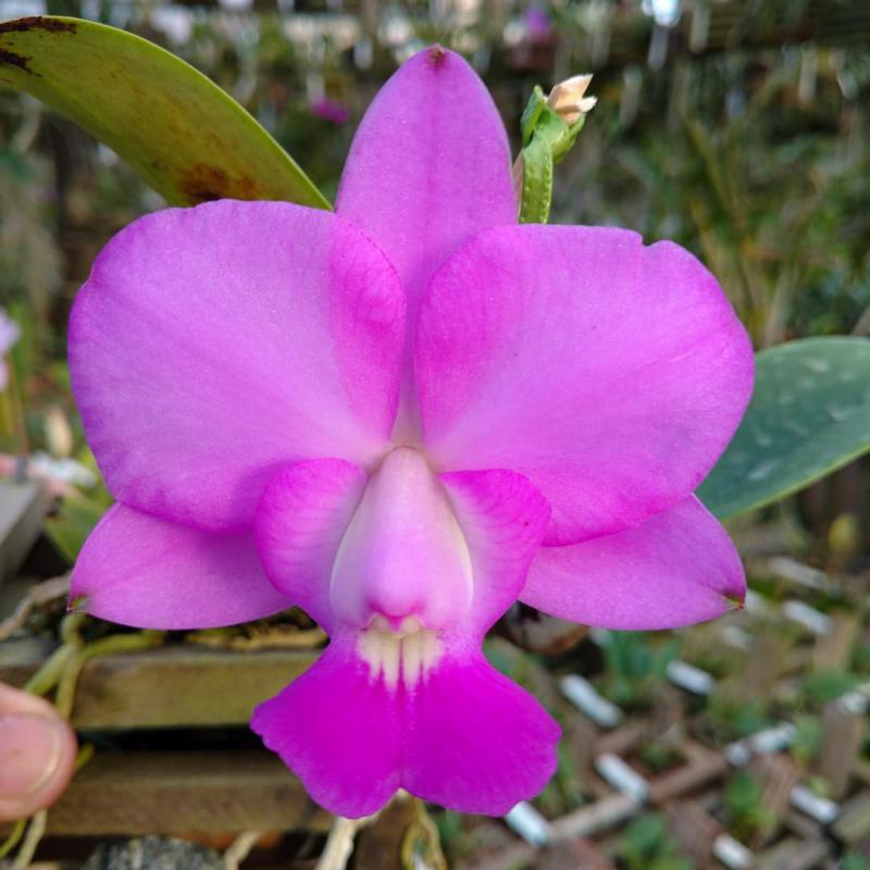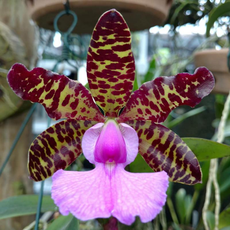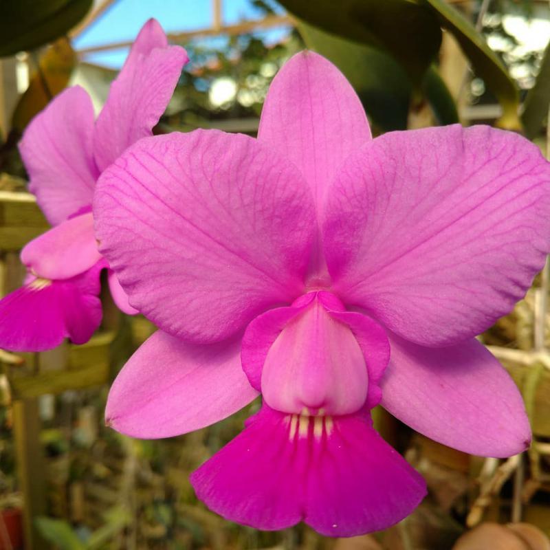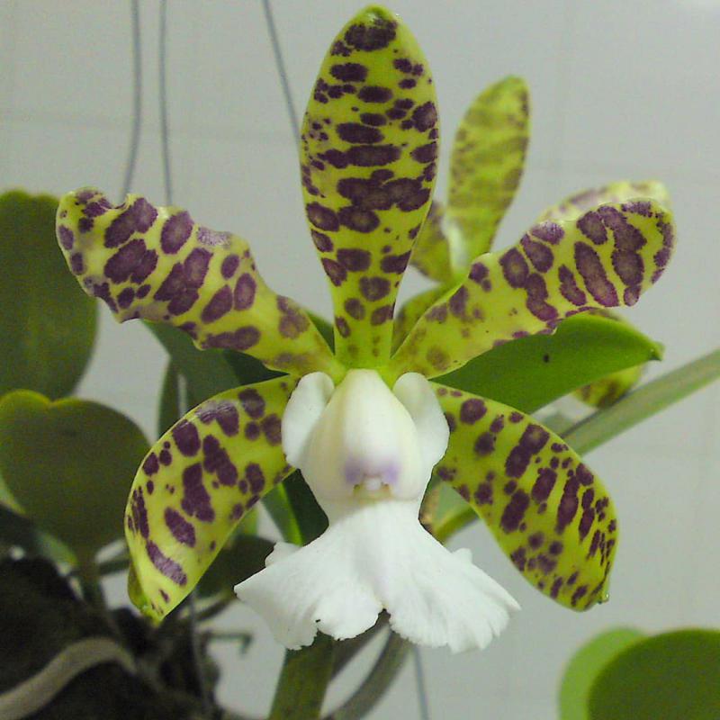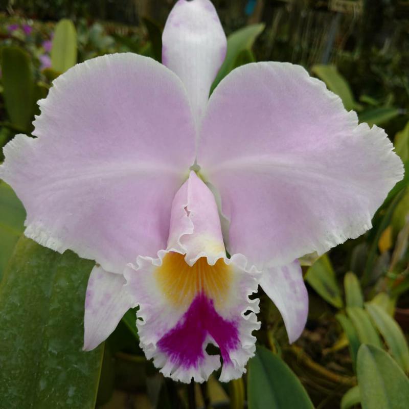Cattleya nobilior var. amaliae - цветы голубовато-розовые, губа жёлтая с чёрно-пурпурными прожилками; общий размер растения больше, чем обычно.