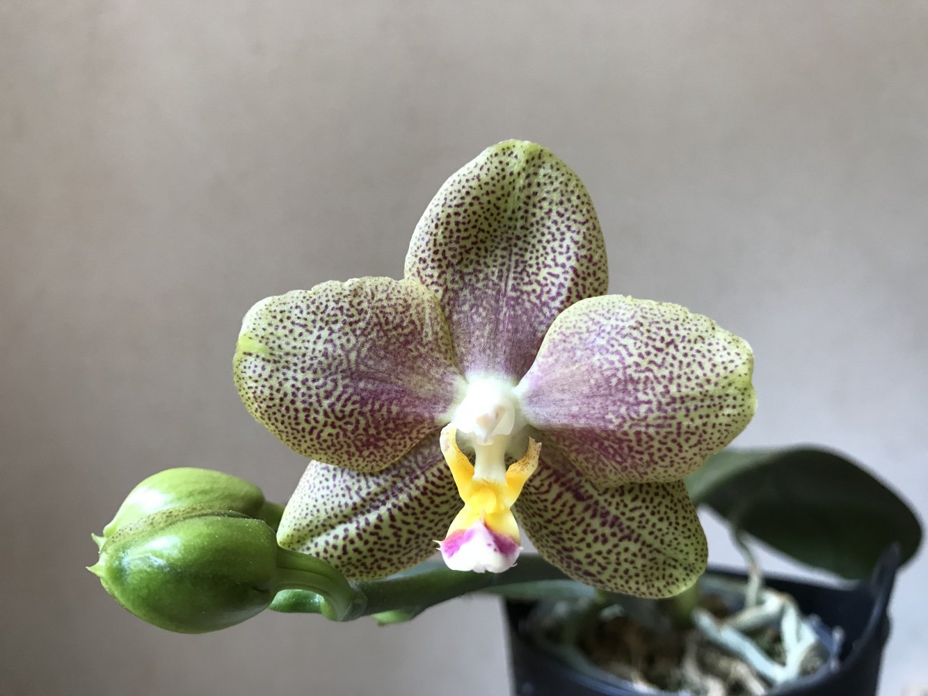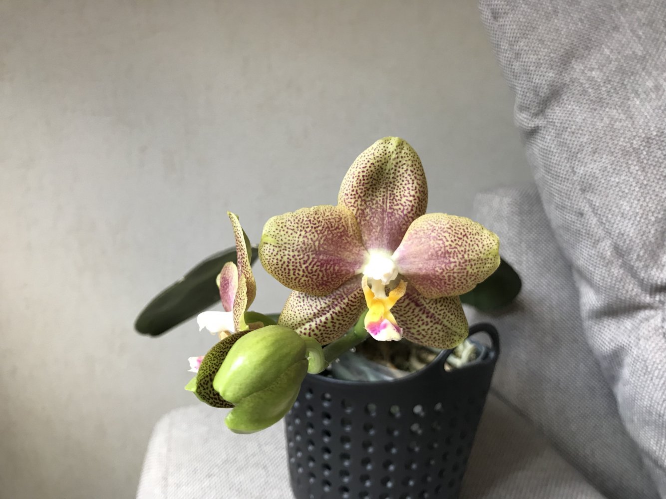 Классный! У меня вот такой он получился. В первые пару дней был зелёный как жабенок, постепенно зарумянился и увял апельсиновым. Крупный, круглый, плотный цветок. Классный, берегу. Есть ещё один ягуар, интересно, какой будетВариант цветения Phalaenopsis Zheng Min Jaguar