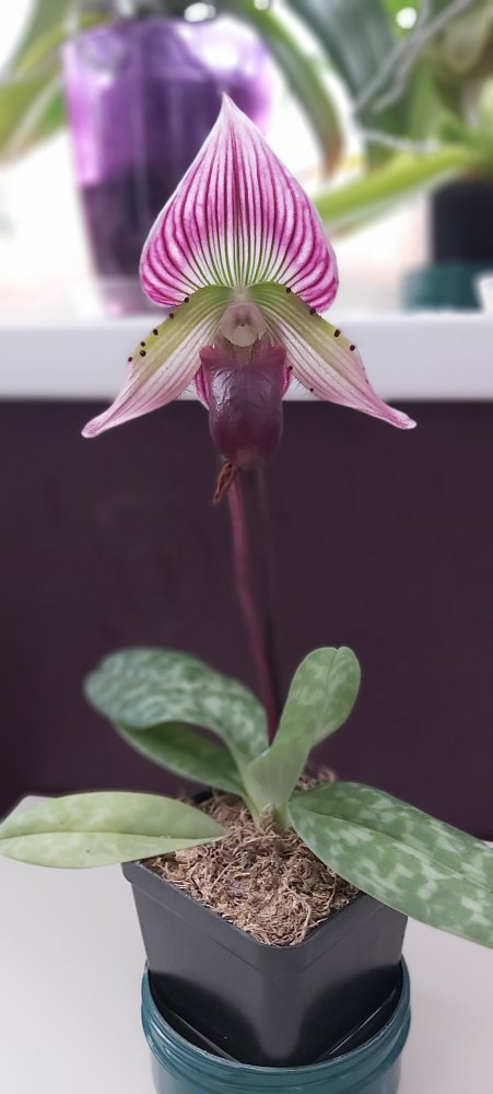А вот вариант цветения Paphiopedilum Maudie. Ожидалось, что он будет красный, а получился вот такой, но не разочарована, всё равно красивый.