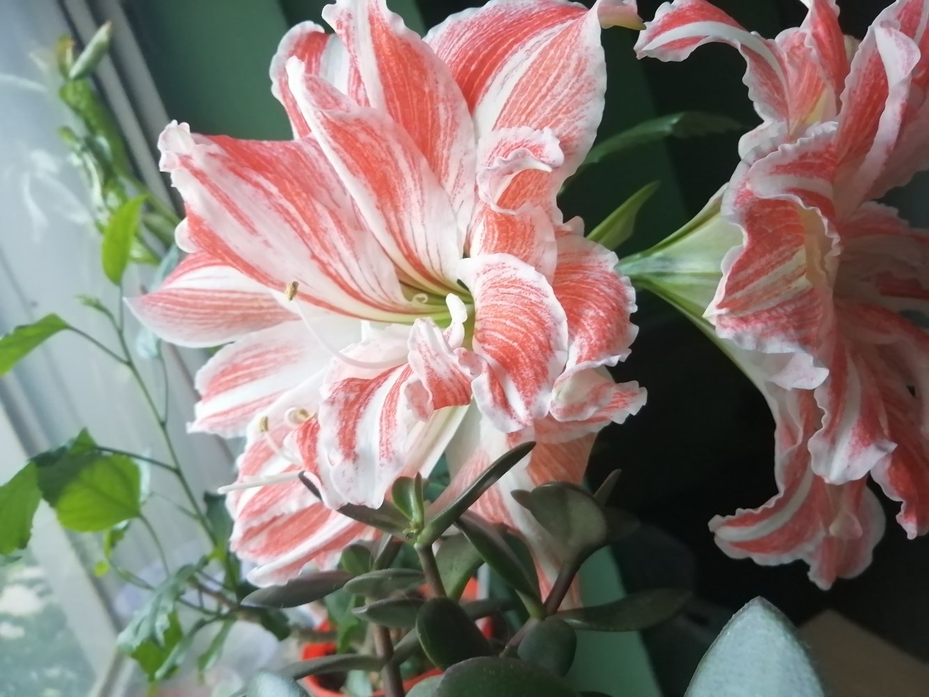 @Liren, насколько я знаю, они сначала цветут, без листьев, а потом выращивают листья и наращивают луковицу, а осенью уже сбрасывают листья и спать )) но это так в ог, а в горшечной культуре не знаю, может специалисты поправят меняПодскажите, пожалуйста, амарилисы же должны уже в спячку уйти или ещё рано? После 8 марта забрали в кабинет те, что планировались на утилизацию как отцветающие, со словами "пусть постоят, поиграемся, если что, выбросим". А они расти изволят... Стоят себе такие сочные зелёные лошади. Зелень - это, конечно, хорошо, и место у нас сейчас позволяет, но мне их уже не хочется утилизировать. Хочется, чтобы потом ещё цвели.