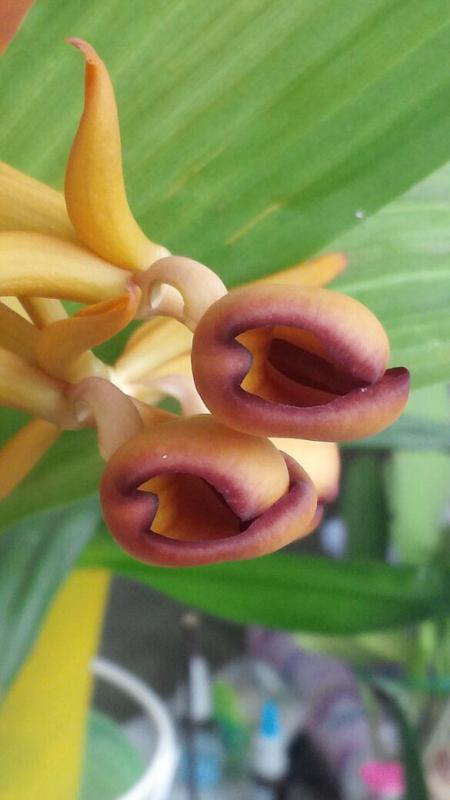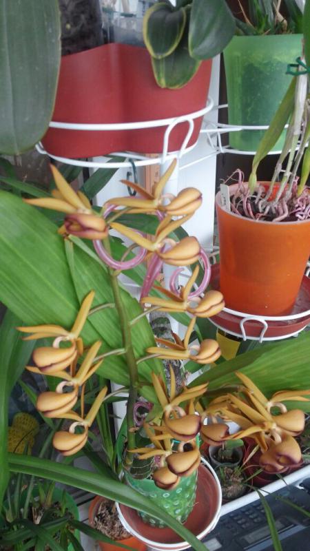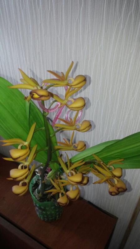 Продам природника с Панамы Mormodes fractiflexa. Покупала 1,5 года назад у частного коллекционера задорого. Продам задорого. В прошлом году цвел на 1 цветоносе 8 цветами. В этом году на моем росте процвел 2 цветоносами 9+8 цветков. Неприхотливый (мучаются там в природе морковки от засухи, у нас благодарно цветут, реагируя на полив и подкорм. Корни остаются с предыдущей бульбы рабочие, в новый сезон и от нового роста появятся, и старые еще поработают. П/бульбы огромные, жирные. Цветки ароматные (даже чересчур приторные), стреляется поллиниями. Только отцвел (пару дней как), п/бульба еще с листьями, без нового роста (что понятно). Налетаем-раскупаем. 4000р.