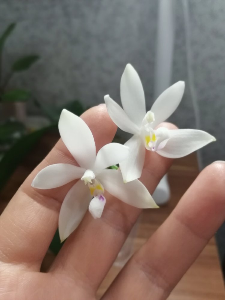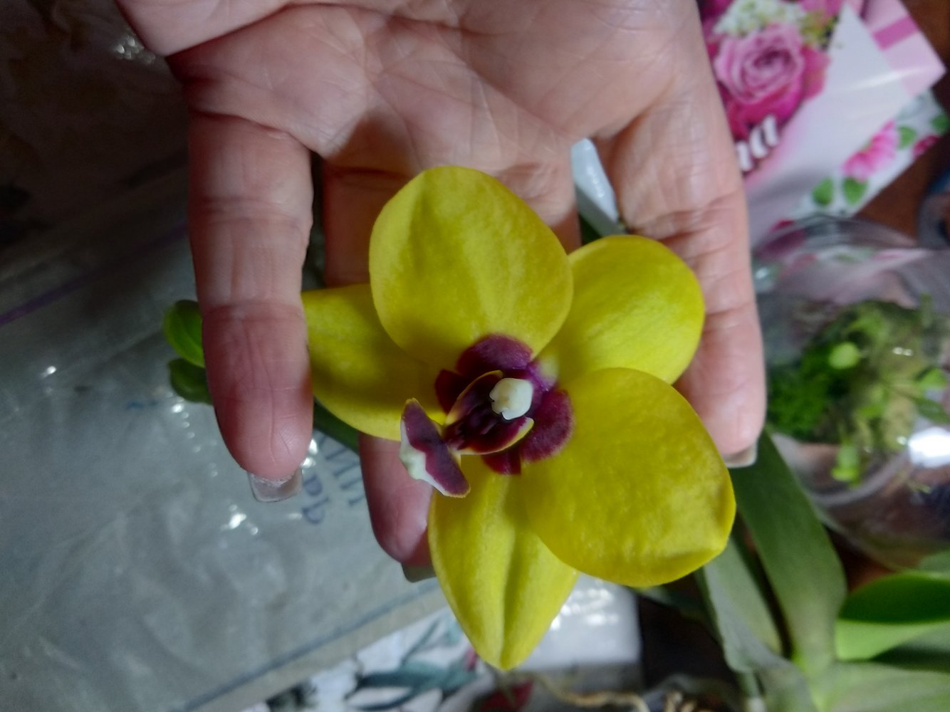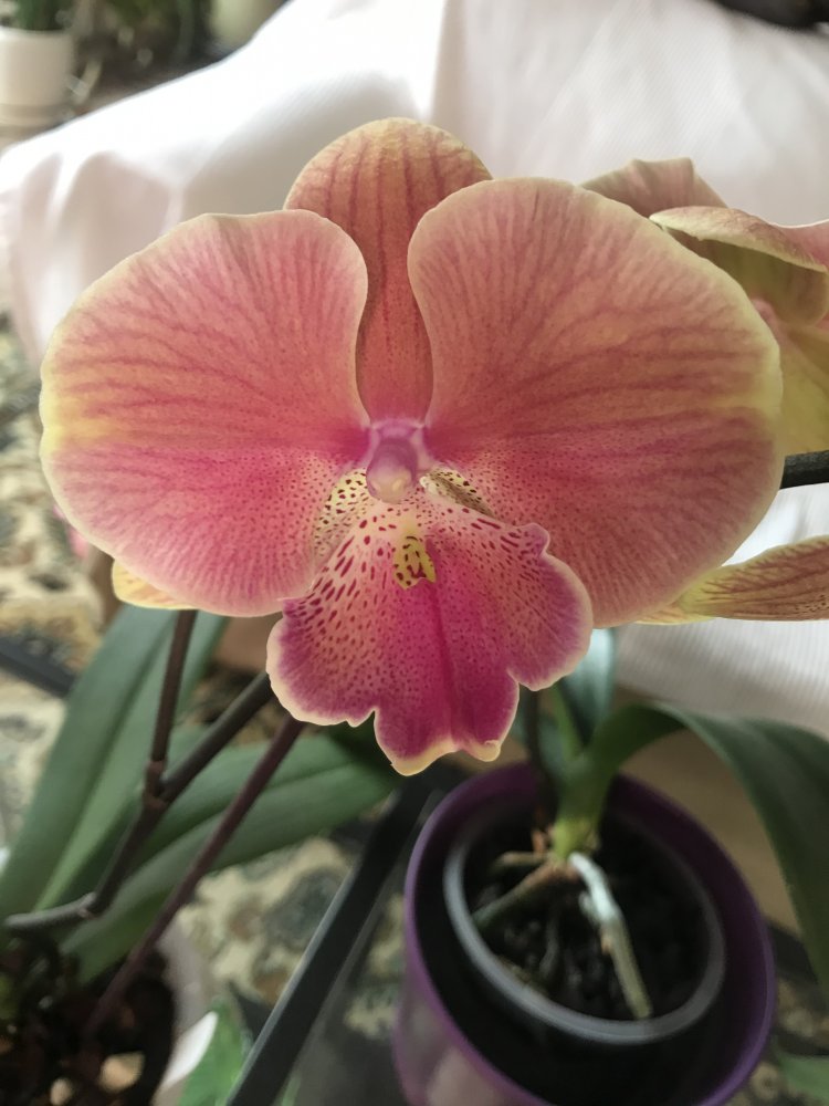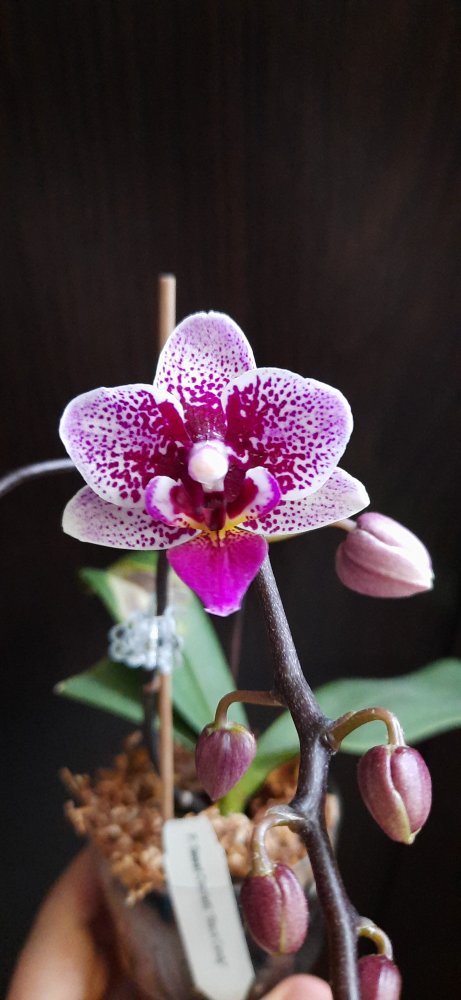 P. Tzu Chiang Tetralitz x Phal. Ld’s Bear Queen заказан в июле 2020, получен в августе 2020. Сейчас цветет полным домашним цветением. Два новых, коротких цветоноса, три распустившихся цветка. Есть приятный цветочный запах в первой половине дня, но окрас (фото 1,2,3) отличается от представленного фото (подписанное) в заказе.