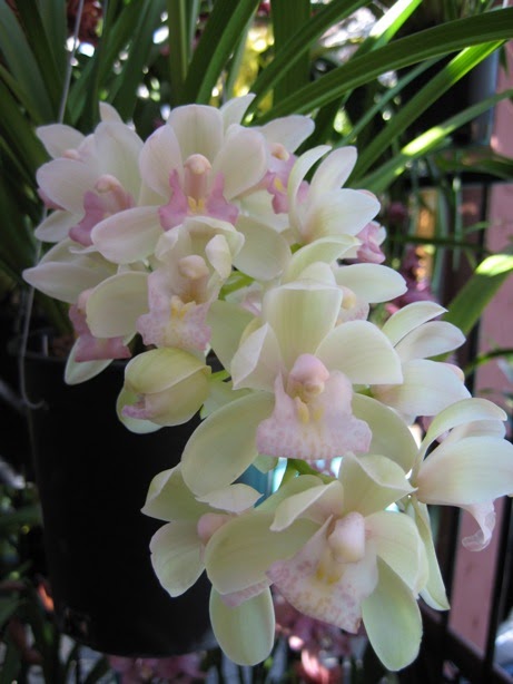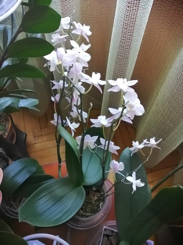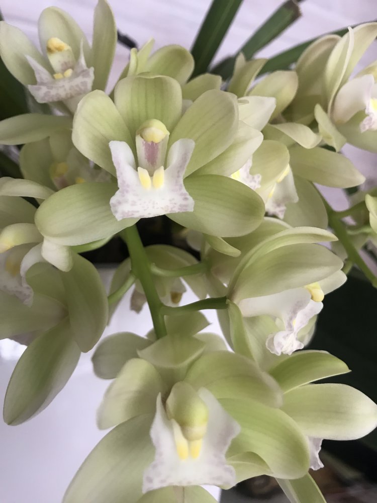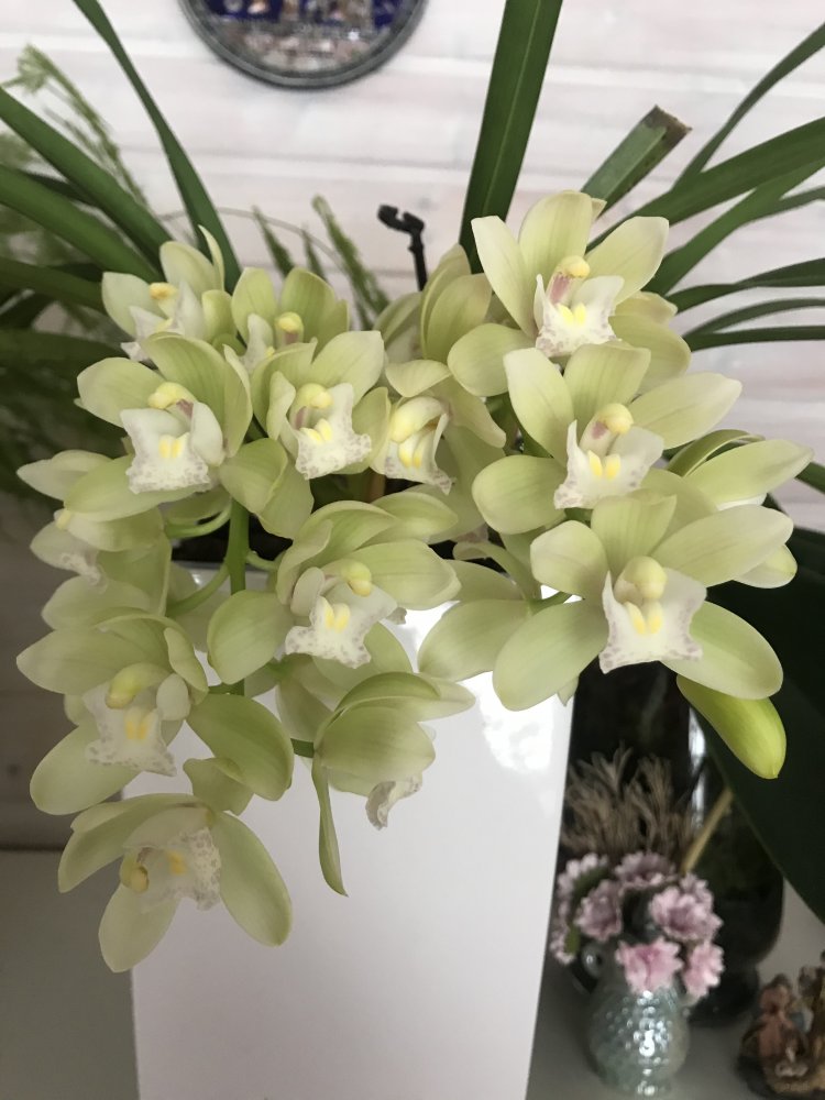 А вот такой цимбидиум Cymbidium Sarah Jean "Ice Casca цвел у меня зимой (не ароматный). Очень компактный. Растил новые бульбы, старые засыхали, Я в очередной раз думала, что вылезают бульбы, а тут такое... (фото под номерами мои, с названием из заказа)