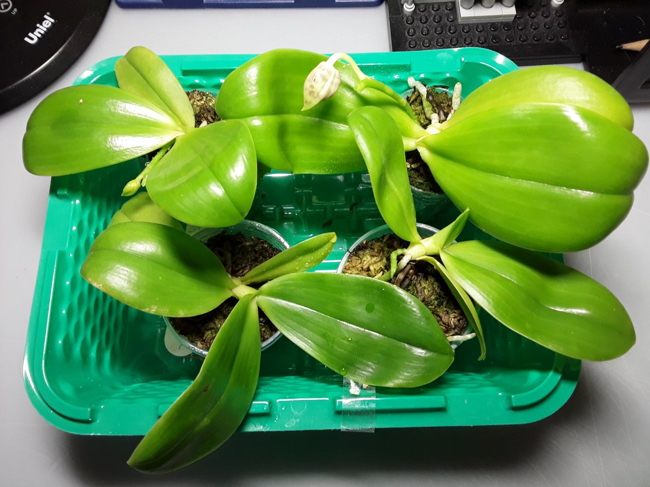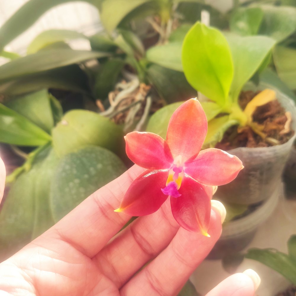 От моего, правда Black Mahagony bird FM 1522 (но это одно и тоже, и пришли одновременно), после удаления подпревших частей осталось 1,5 листика и 1 ювенильный (самый крупный 5см). Корни были отличные и вот сейчас, спустя пару недель, мы погнали новый домашний листок.Спец P. Black Piano от 11.04.2021 под названием Phal. Butterfly Mahogany. пришел в июне 2022. Листья были в не очень хорошем состоянии. Оно и не удивительно: такой малыш проделал большой путь. Зато корешки все в порядке, сейчас листики расправил, пошел в рост. Кормлю и жду скорейшего цветения.