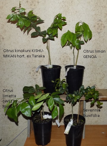 Заказывала: 1.Citrus sp. SATSUMA x CLEMENTINA - Citrumelo; 2.Citrus madurensis KALAMONDIN VARIEGATA ( Lour. ) - Citrumelo; 3.Citrus aurantium var. myrtifolia CRISPIFOLIA - Citrumelo; 4.Microcitrus australasica (F. Muell.) - Cervene plody - Citrumelo; 5.Citrus unshiu SAIGON SRA 12 ( Marcow. ) - Citrumelo; 6.C. taitensis OTAHEITE ( Risso ); 7.Citrus sinensis COTIDIANA (L.) Osbeck - Citrumelo; 8.Citrus bergamia BERGAMOTTE Risso & Poit. - Citrumelo