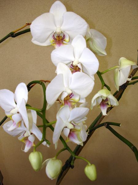 Да собственно ничего особлигого не делала. Сидит в коре, сверху маленький слой мха, чисто символический. Поливаю по мере просушки, ориентируюсь на цвет корней в горшке. Не поливаю сверху, ему не понравилось, сначала поливала горячим душем - чуть не сдох, теперь только погружением. Удобряю вместе со всеми, кемирой, бона форте два раза в месяц, еще с весны до сентября, раз в месяц опрыскиваю витаминами В6 и В1 (развожу в литре воды по ампуле того и другого). И в этом году добавила света, летом было утреннее прямое солнце где-то часа по 4, а с сентября под подсветку. Впринципе получала я его как FS, так что может он меня так долго мурыжыл из-за света, поначалу он стоял с фалами.как и чем кормили, как ухаживали