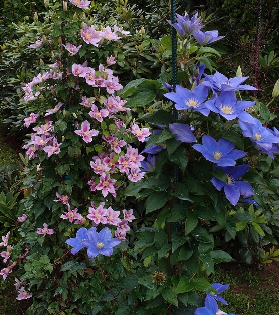Хочу поблагодарить Анастасию за поставку.Брала 8 штук,два замены,сажала в конце апреля ,ещё до тех жутких заморозков со снегом!Причём в ямах стояла вода,положила сколько нашла кирпичей на дно,но...Вообщем,была готова к потерям.Только сегодня смогла доехать и поставить опоры.Живы все!!Пурпл дрим отцвел,ещё тогда,плети приличные,Розабунде цветет,цветов много,они какого то палево розового оттенка,только раскрываются,с самого низа,очень щедрая.Бутоны на Иван Олсон не выжили,но пошли молодые побеги с середины,его тряхануло конечно.У некоторых плети поменьше,у некоторых уже вполне себе.Спасибо большое!!Мои коренные два клематиса только полезли ,причём белый,цветущий рано,только только дал побеги,а он уже отцветал к этому времени.
