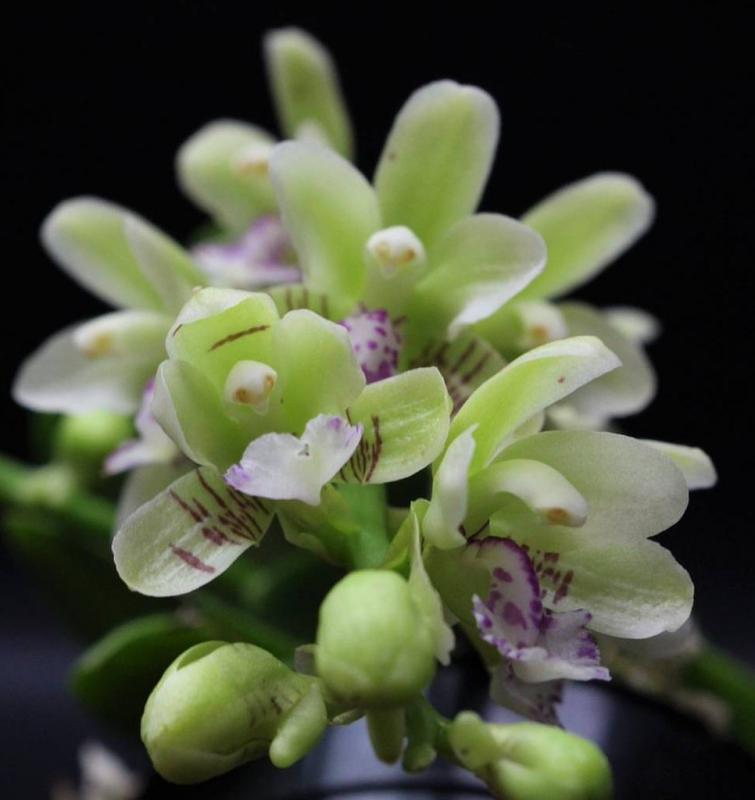 Hisui -это нефрит. Особенность этой неофинетии - ее зеленые цветы. Когда открываются бутоны, они имеют бледно зеленый оттенок. Через несколько дней цветы приобретают более зеленый оттенок. Отличные темно зеленые тонкие стройные листья с заостренными кончиками. Коричневые ствол и корни. Место соединения листа со стволом имеет форму месяца.
