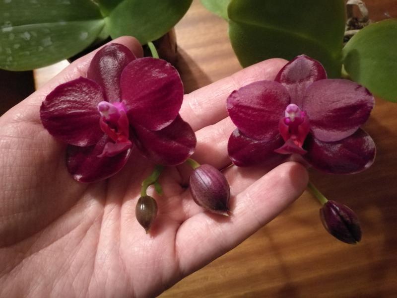 Цветки яркие, атласные, но придется с одним расстаться, а то с местом туговато