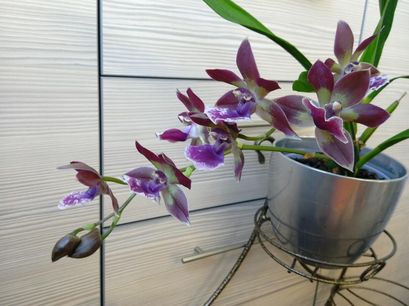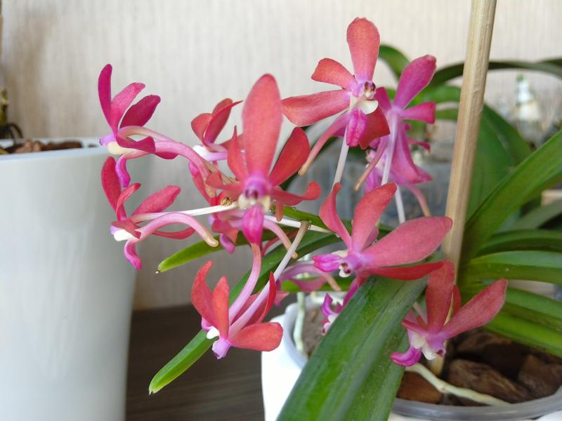Один из трех магазинных безымяшек мини-фаленопсисов зацвел в кокедаме ТАИЛАНД не смотря на то, что растет в тени листвы папоротника Давалии на подоконнике северного окна, да еще и цветонос был сломан на стадии формирования бутонов. Ну и живучие же они.