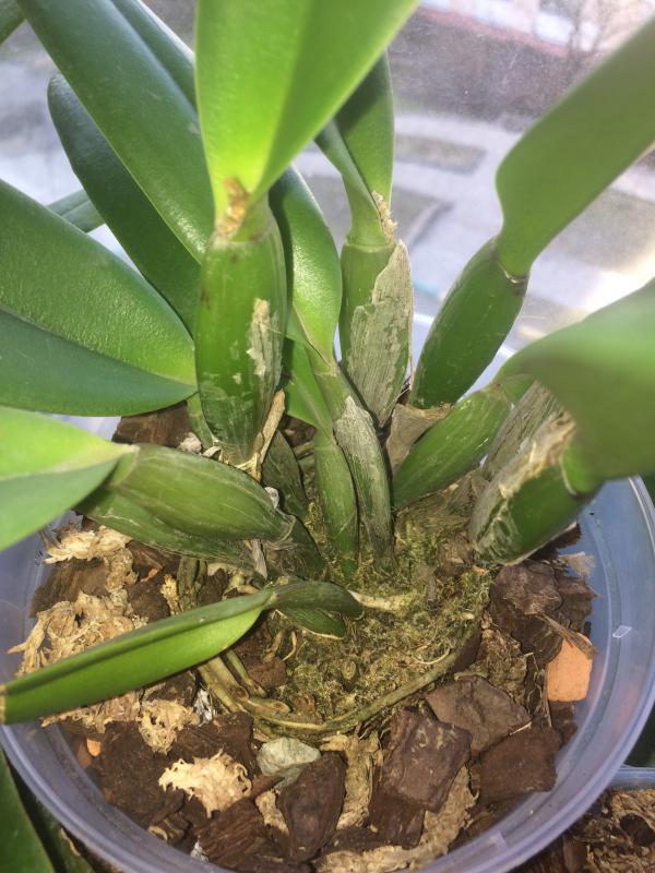 Продам Rlc. King Harold x C. Intermedia. 1100 руб. Куплен здесь на сайте, доставлен 15.01.2017 г. Посажен в новую кору, горшок 12 см. Пришел с чехлами на двух бульбах, в феврале-марте цвел, фото прилагаю, есть легкий аромат. Сейчас 2 новых роста и корни уже хорошо видны.
