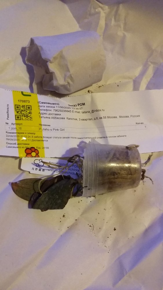 11 июля было получено, согласно стикеру в горшочке Phal pinlong cherie x schilleriana от Yihcheng, фото прилагаю. Причем, на самом пакете данные моего заказа указаны правильно.