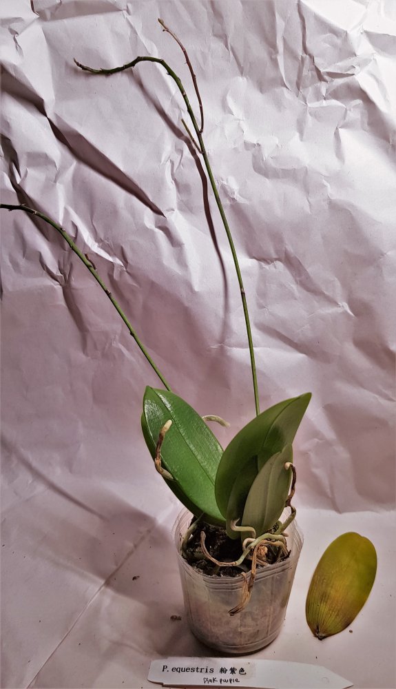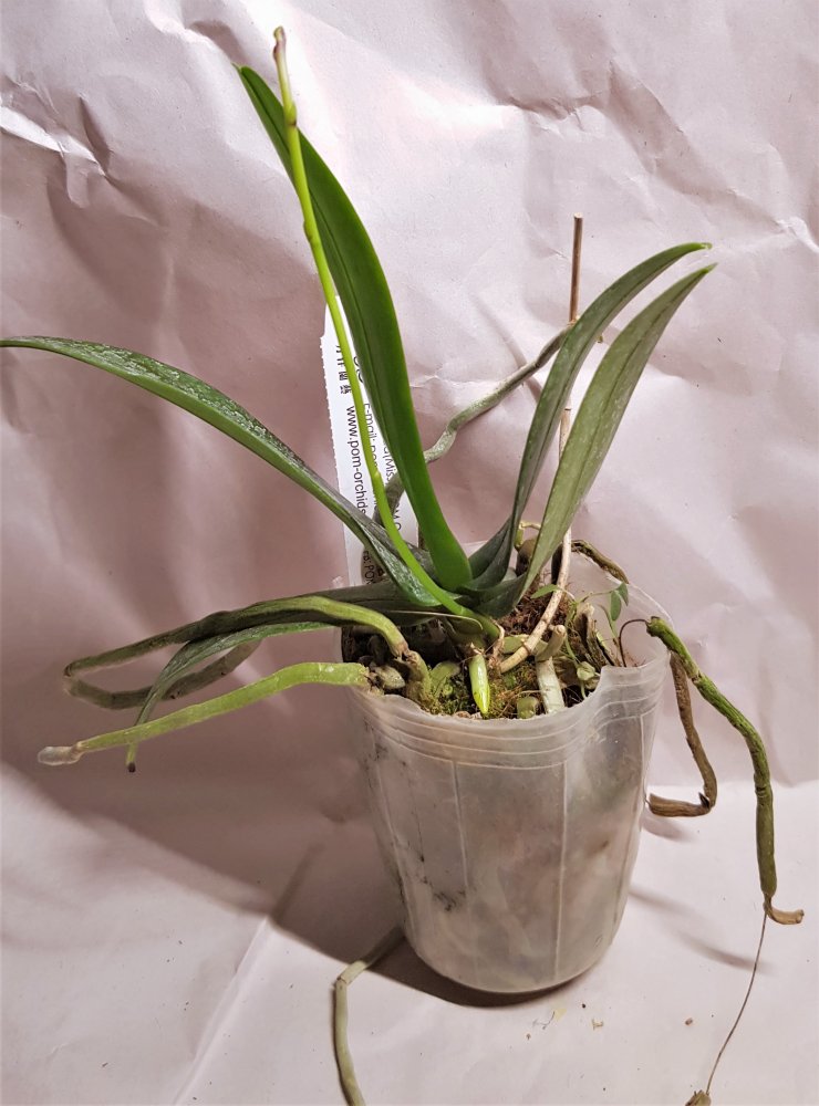 2) Phalaenopsis equestris Pink purple (фото 3-6). Крепкое растение с двумя уже отцетшими цветаносами, растут боковые. Один нижний лист сбросил. Мох сухой. Корней много все живые.