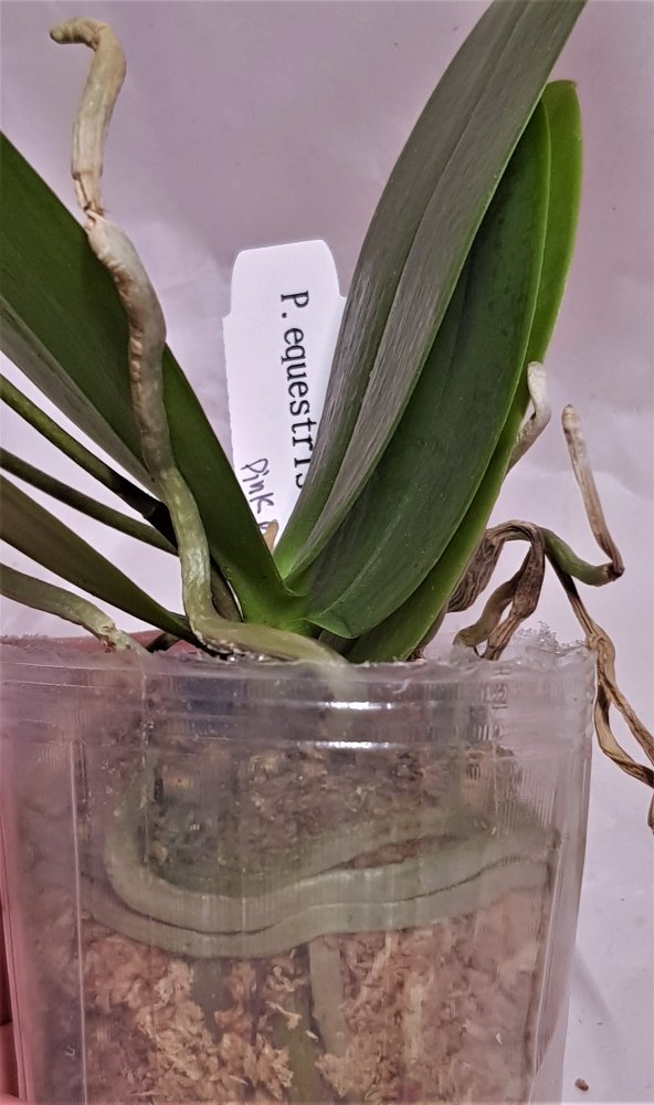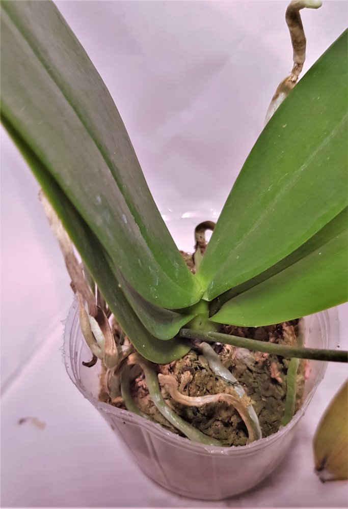 3) Phalaenopsis equestris var. aquinii (фото 7-8). Крепкое растение. три старых срезаных цветоноса и один новый растет. Мох сухой, но корней много и растут новые.