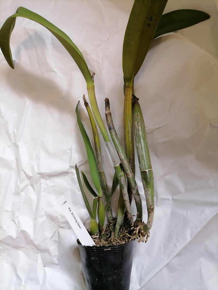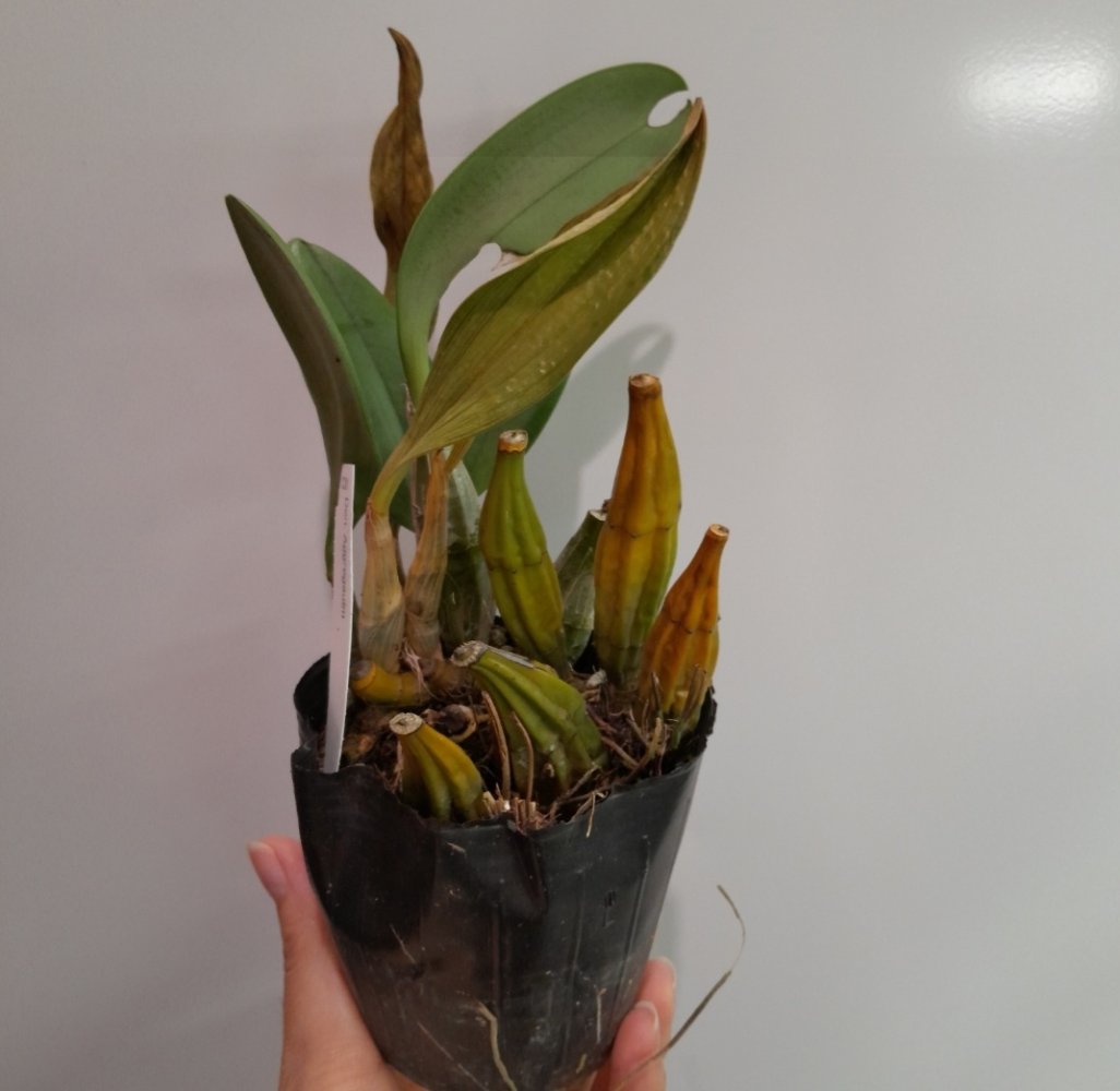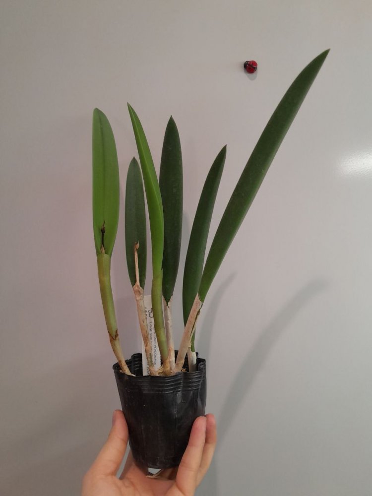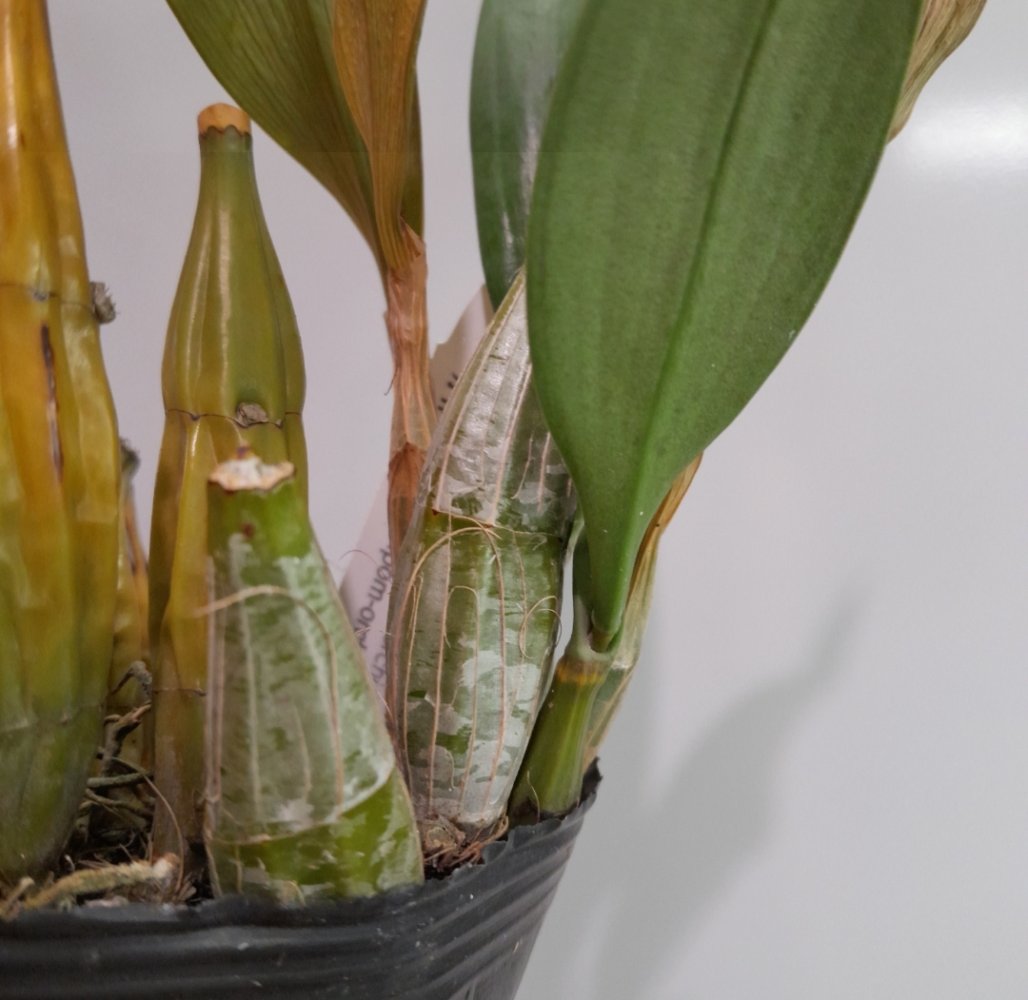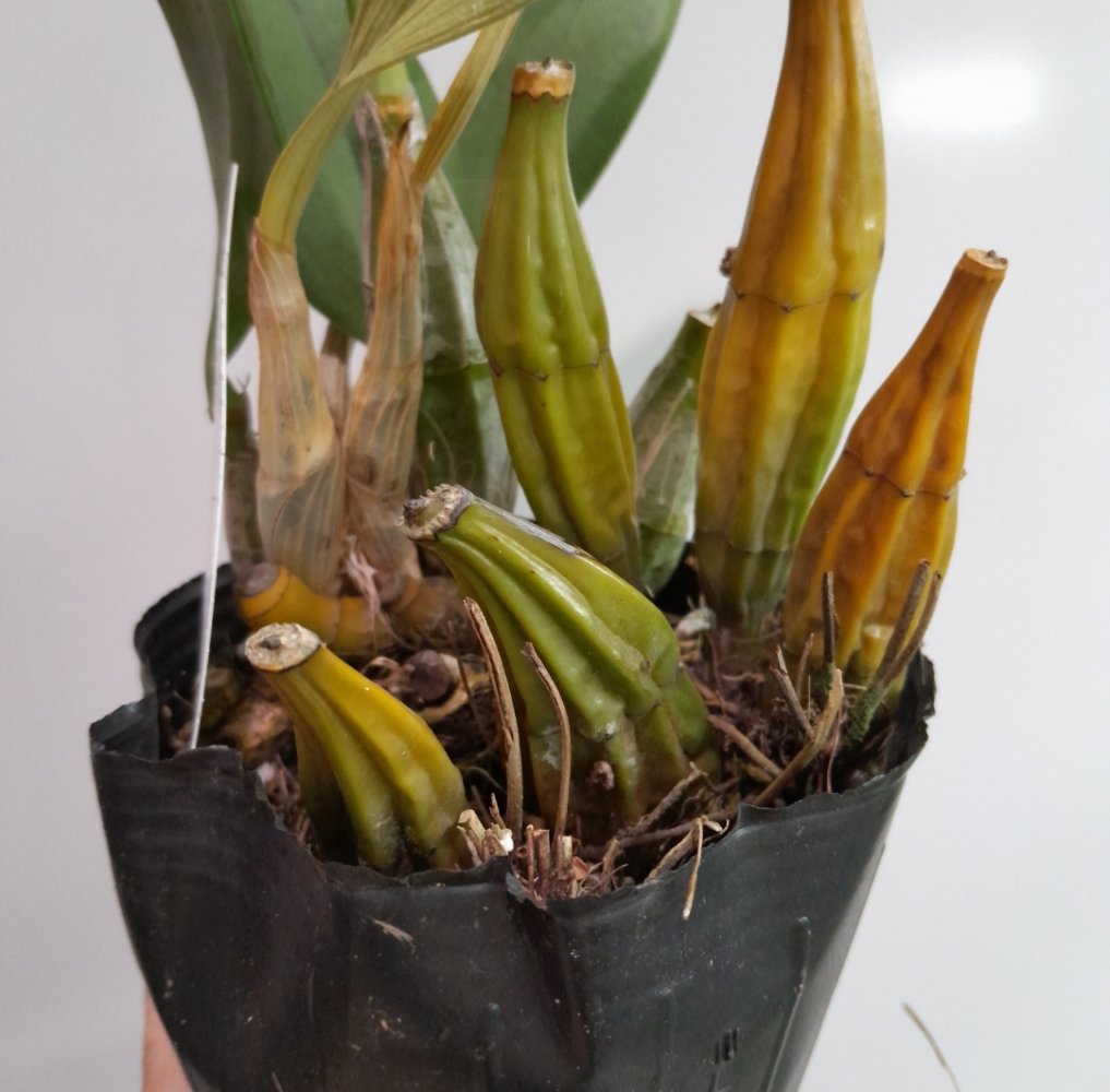 Чудесное крепкое растение, шесть псевдобульб с листьями шикарного качества (каждая из которых уже процвела).