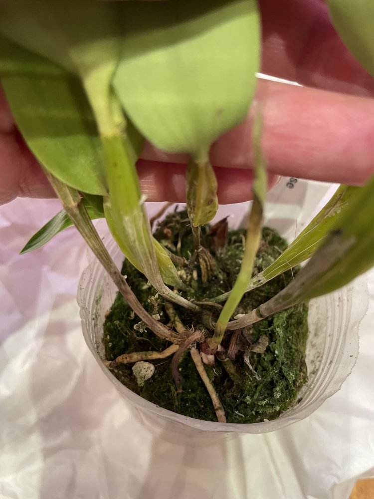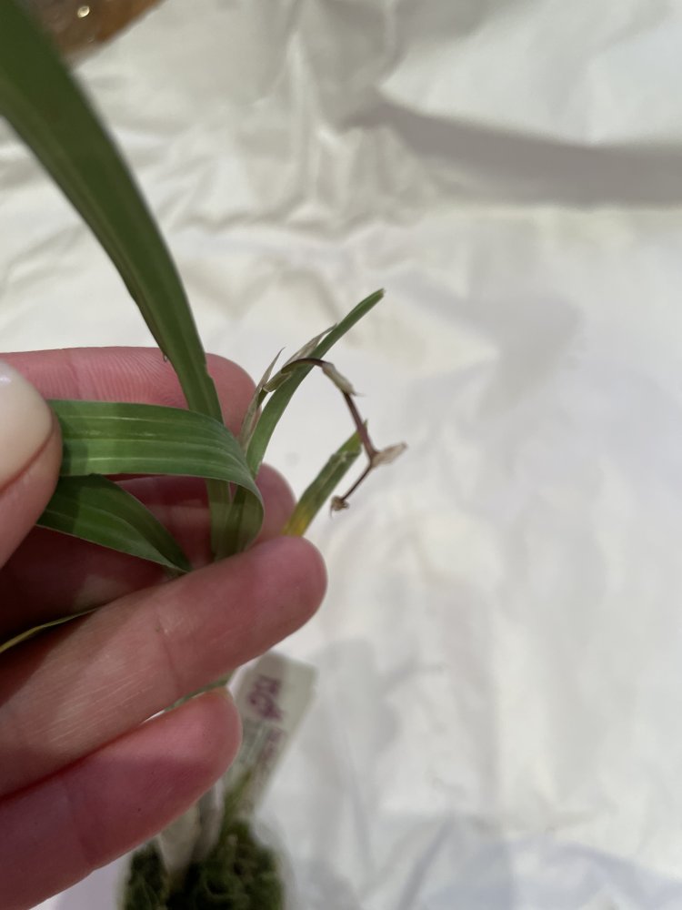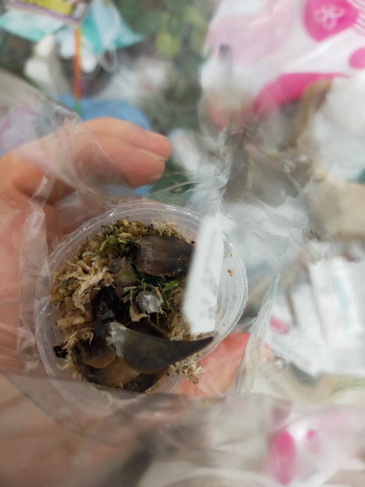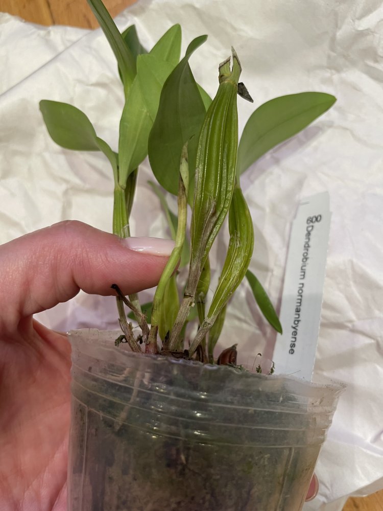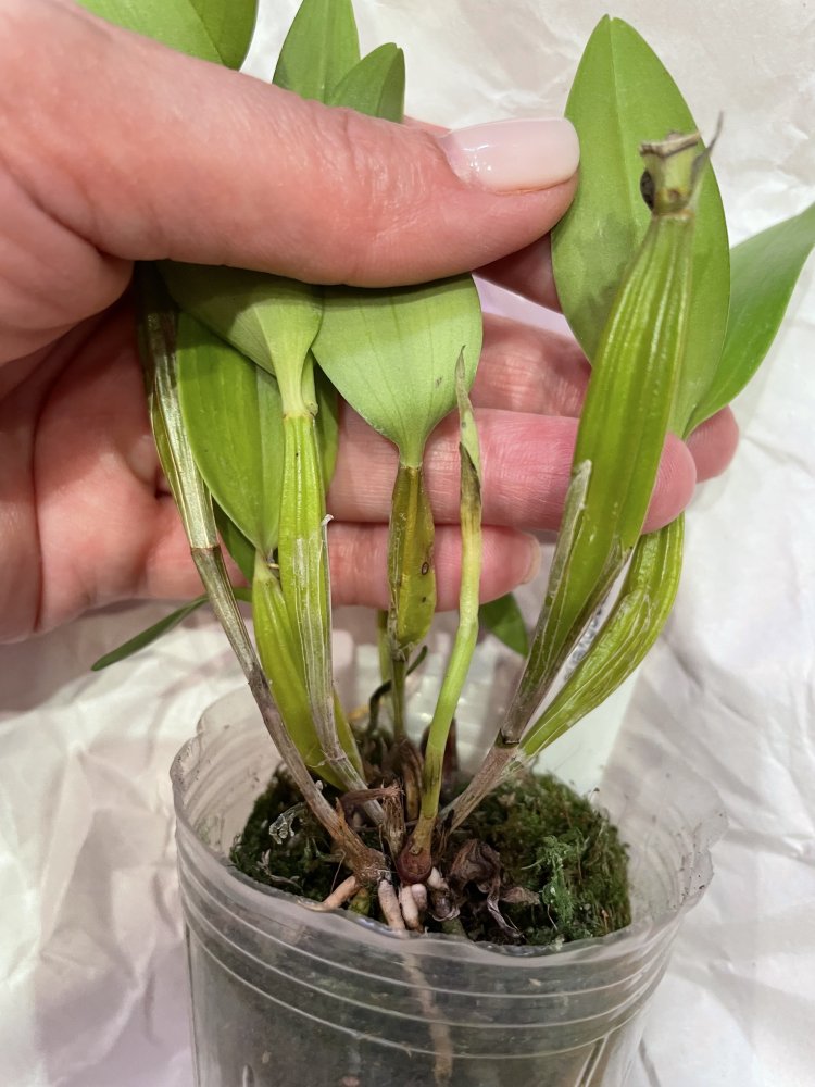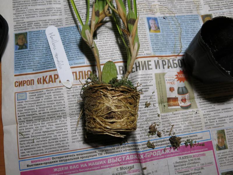 С Bulbophyllum ambrosia чуть похуже, пересушен, но живой. Две бульбы жёлтые. Гнили нет.