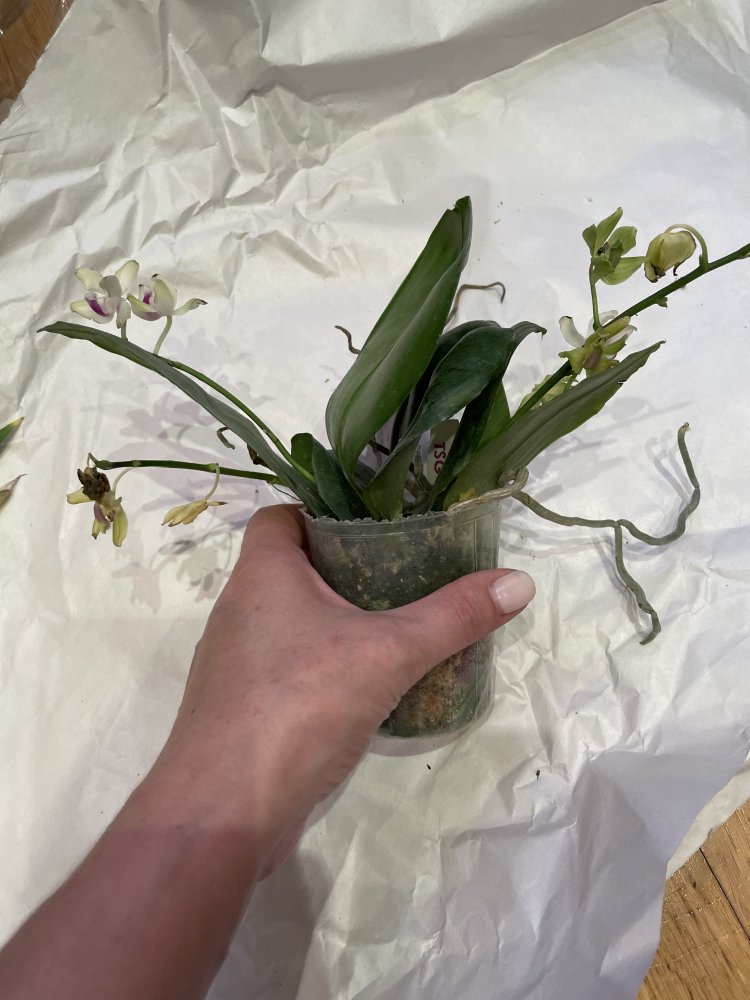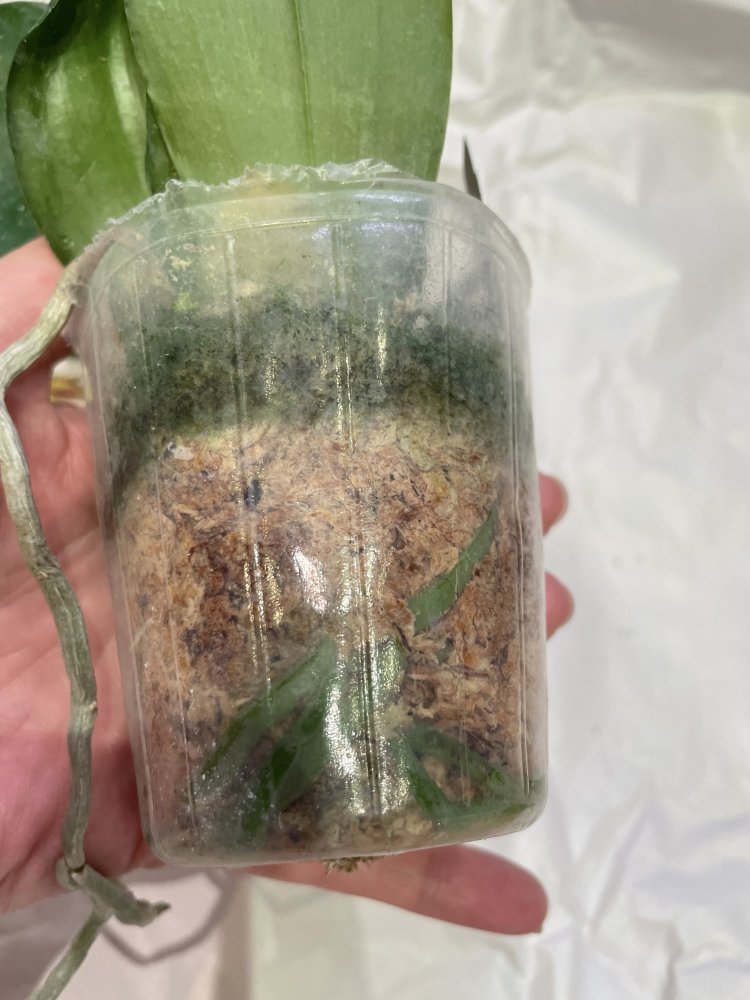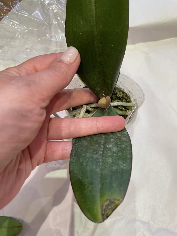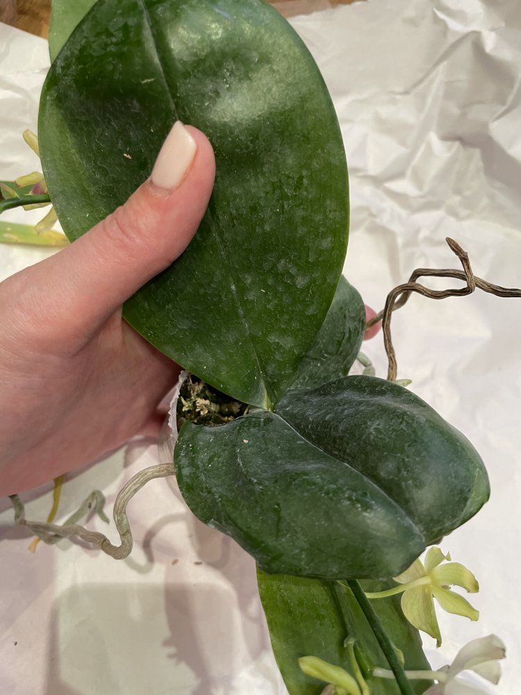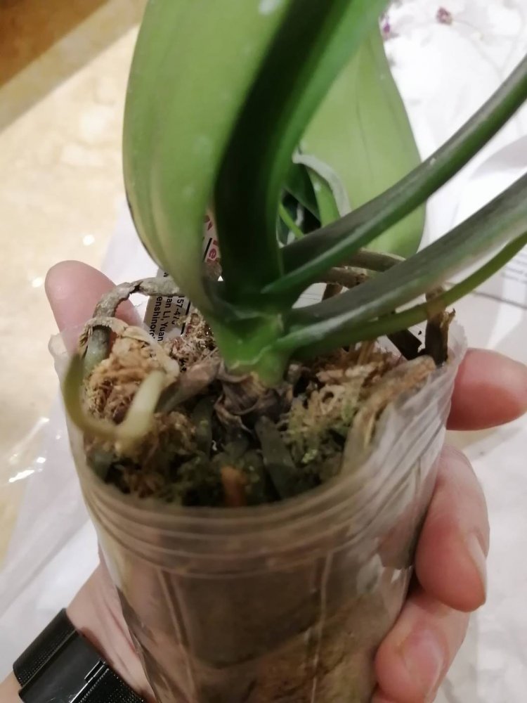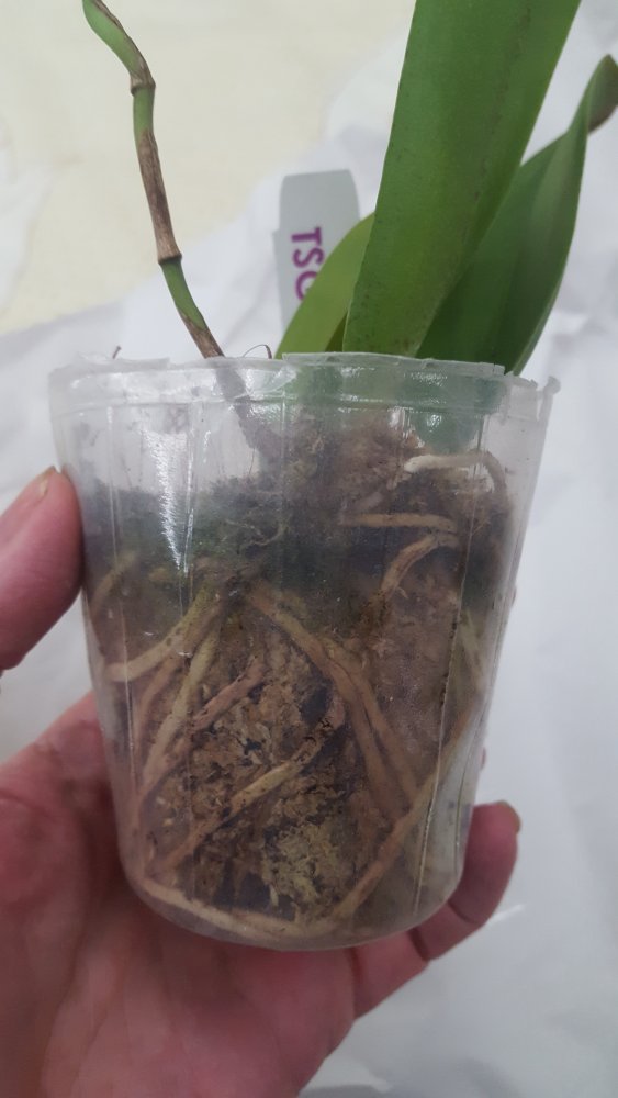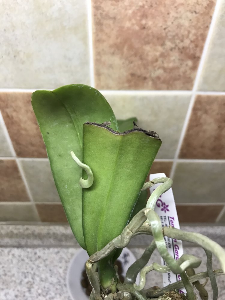 Растение взрослое, куча корней и засохший цветонос. Правда отвалилось два листа, по непонятным причинам. Гнили