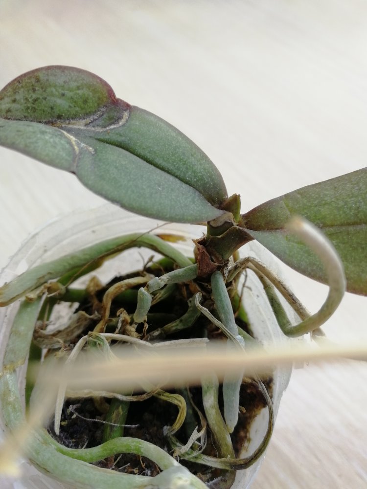 Хочу поделиться, как растёт малыш Phal. Yaphon Snow white (venus x pulchra), который пришел летом 2020. Прилагаю фото, сделанные в день получения, и сейчас. Нарастил два листика и корешки, довольно бодренький!
