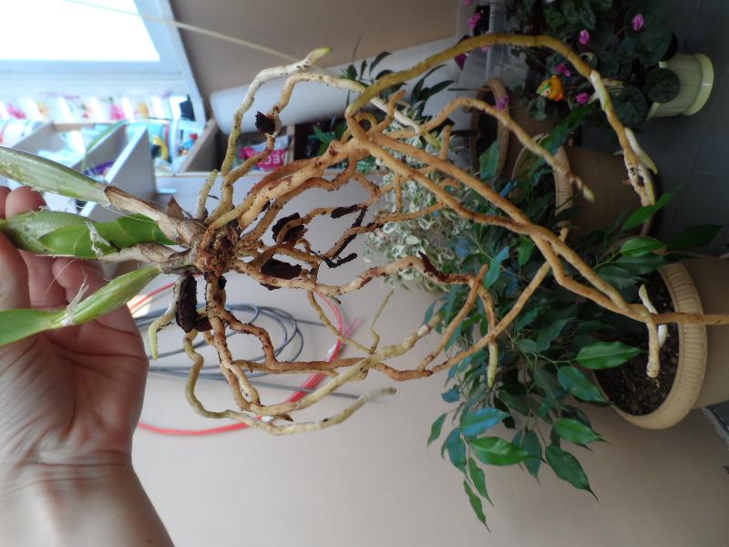 Корневая шикарная, на фото все видно, три огромных материнских бульбы плюс подросший новый ростик, посадила в орхиату в красивый горшочек. Тургор листьев просто супер.