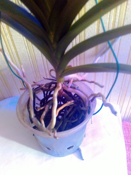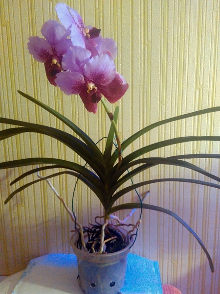 1. V. Masai (blue) x V. Sanderiana x V. Boonchoo-Keeree Delight, такое название было на бирке и в каталоге, когда покупала. Бирка давно испарилась. Растение цветет, корневая в норме. Посажено в пустой горшок. Цена 1600 р.