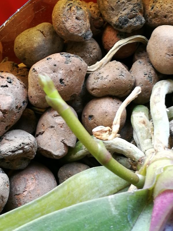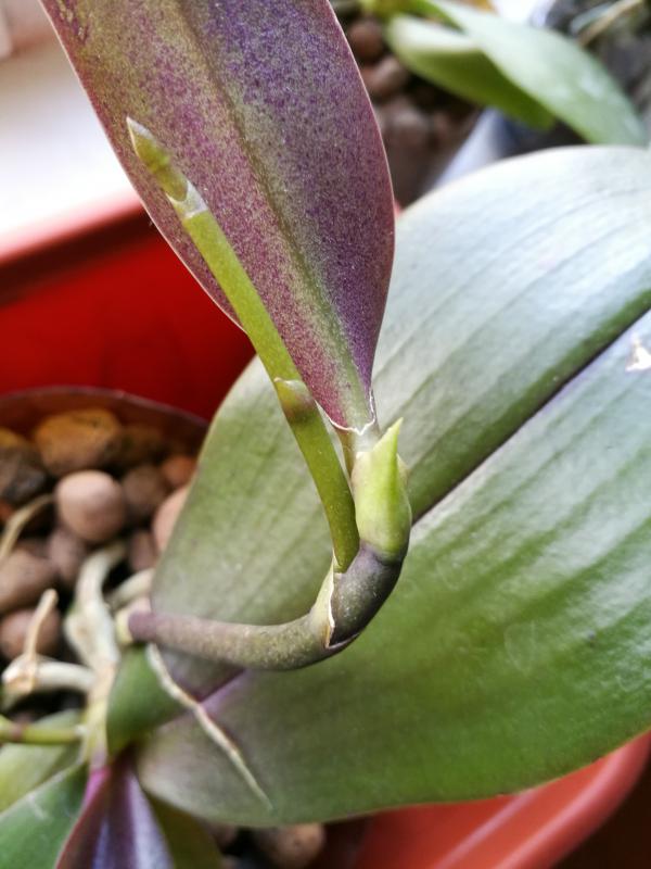 Покажу и я своего на данный момент. Сейчас растет новая стрела, все же это был не корень. И старая тоже дала ответвление, так что обрезать отцветшие цветоносы не стоит.