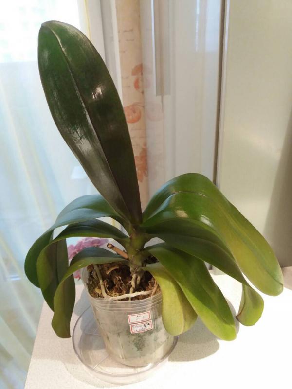 Второй. Его достали из мха, замочили в химии и посадили в кору. Корни он отсушил прилично после этого. Пришёл со срезанными цветоносами. Еле-еле дорастил молодой лист и пустил ниточку цветонос. Что из него процветет неизвестно, но надеюсь хоть что-то похожее на цветы я увижу.