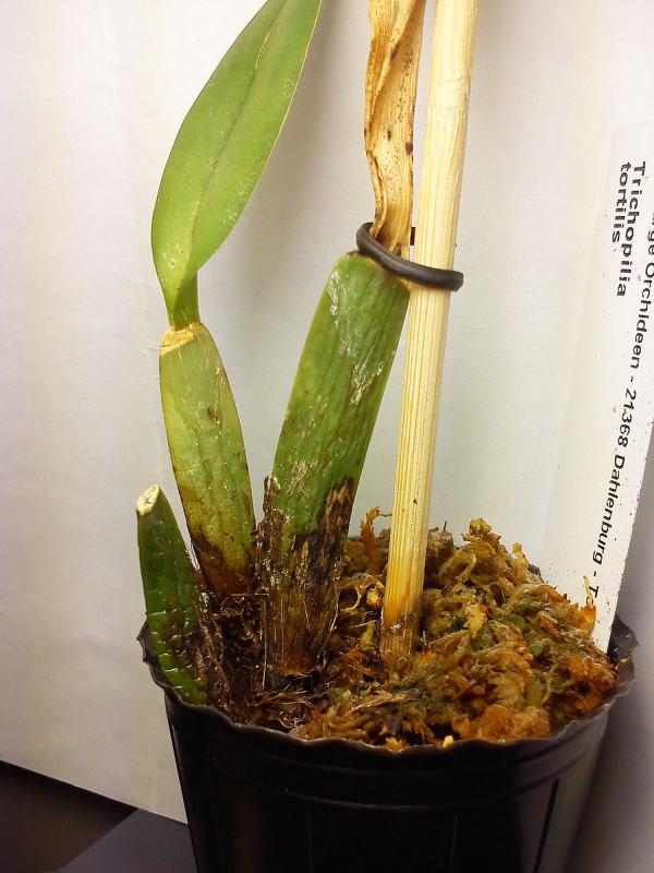 DevinTT, состояние у трихопилии вызывает опасение. Корней живых скорее всего нет, раз на полив не реагирует. И от тех бульб, что сейчас есть, они уже не вырастут. Нужно создать максимально благоприятные условия для того, чтобы она дала новый рост. Пятна такие на очень многих растениях от Карге, вероятнее всего какой то грибок. При правильном уходе больше не появляются. Но сейчас все же их лучше обработать. Я такие густо с запасом замазываю неразведеным Максимом. Мох на фото слишком влажный, нужно меньше поливать. А еще лучше только опрыскивать сверху, т,к. пить много она все равно не будет и только будут создаваться условия для гниения. Еще, когда Вы ее сажали, корни были мягкие? Если да, то весь гнилой веламен лучше убрать, оставив только тяжи,иначе гниль с корней перейдет на бульбы. В тепличку ее сейчас нельзя, даже в открытую. По температуре - сейчас обычная комнатная будет оптимальна, но без сквозняков. Поставить лучше всего под лампу, хотя бы обычную настольную. Свет для нее сейчас практически последний шанс, поэтому ему нужно уделить максимальное внимание. В дальнейшем при уходе предпочительны температуры от прохладных до умеренных, жару она не любит. Также требует повышенной влажности воздуха, летом очень хорошо реагирует на душ. Но это все когда она реанимируется.