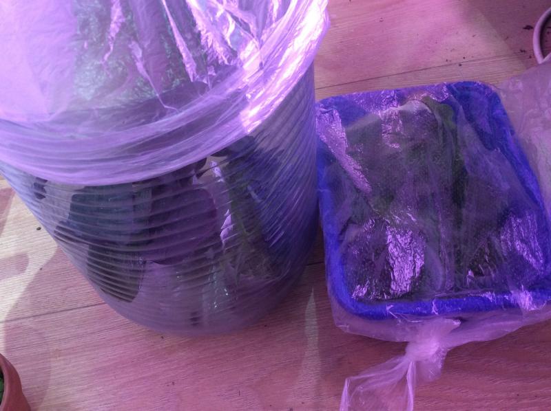 ): громко сказано.. это крышка из-под торта, накрытая плотно полиэтиленовым пакетом. Мне так удобно просто. Очень мобильно. Куда хочу, туда и ставлю. Где место есть, грубо говоря и по их состоянию. Сейчас вот потеплее поставила, потому что один товарищ из Elsner, справа стоит, еще ниже его покажу, не хочет жить. Это я его вытащила для фото, вообще они все вместе втиснуты там, надо бы попросторнее организовать им место.