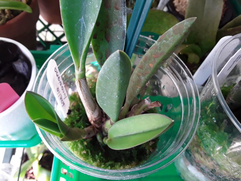 Ну и совсем, чтобы все сомнения отпали, покажу третью лелию. Была получена вместе с первой от Сейдель - из 2 крупных деленок без корней. Посадила обе сразу в субстрат в один горшок. Тургор потеряли незначительно, себя не поедают (иначе тоже бы переехали в тепличку). Но и роста активного нет. Корни только появляться начали, новых ростов нет.