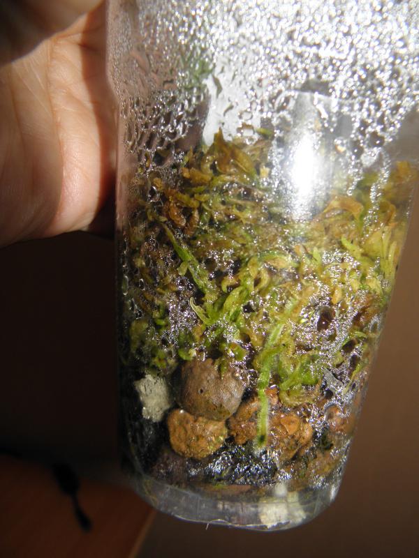 Итак, прошло почти 2 месяца с посадки первой лелии от Сейдель в парник на живой мох для наращивания корней. Делалось это для того, чтобы максимально сохранить массу растения - чтобы в процессе наращивания корневой с нуля оно минимально себя "съело". Итоги вполне уже можно подводить. Эта лелия за 2 месяца начала активно растить корни и их уже видно в стакане прилично. Плюс, как и задумывалось, старые бульбы не съелись ни одна, только 2 самых старых листа. Бульбы и листья на сегодня все в тургоре (впрочем, так и было с самого начала и всю реанимацию). Уже в стакане появились и растут 2 молодых роста, 1 начинавший расти на момент получения - не отгнил, а дорос.