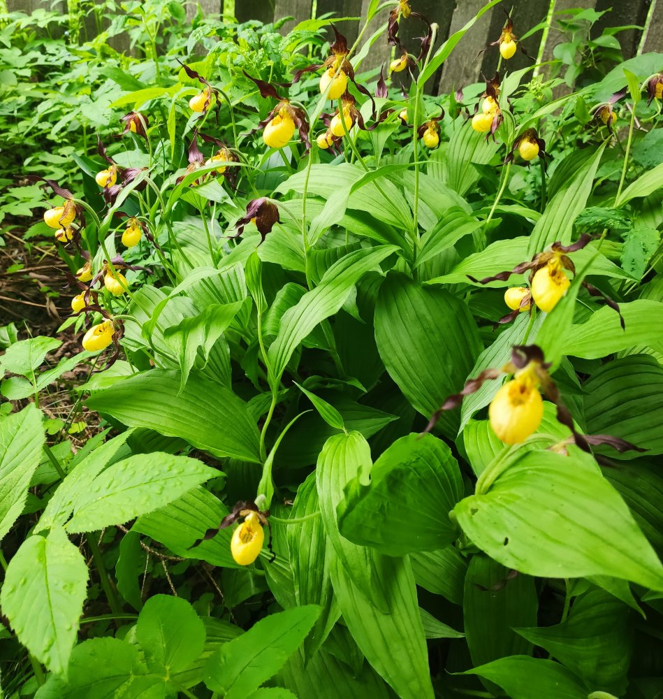 Для большинства башмачков подойдет участок в светлой тени лиственных деревьев или с северной стороны дома, забора. В общем, в нежарком, довольно открытом, но не ветреном месте, где солнце появляется лишь утром и вечером. В качестве индикатора пригодности условий можно посадить обычные лесные папоротники: если они хорошо растут, значит, и башмачкам понравится. Многие гибриды могут расти вместе с прочими садовыми растениями, особенно в парадных цветниках перед домом. Если фасад смотрит на север или северо-восток, они могут стать украшением клумбы с изысканным набором неагрессивных растений вроде небольших папоротников или плотнокустовых злаков. Венерины башмачки хорошо смотрятся на первом плане перед кустарниками, заслоняющими их от жаркого солнца.