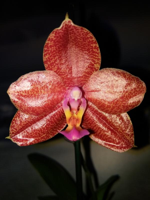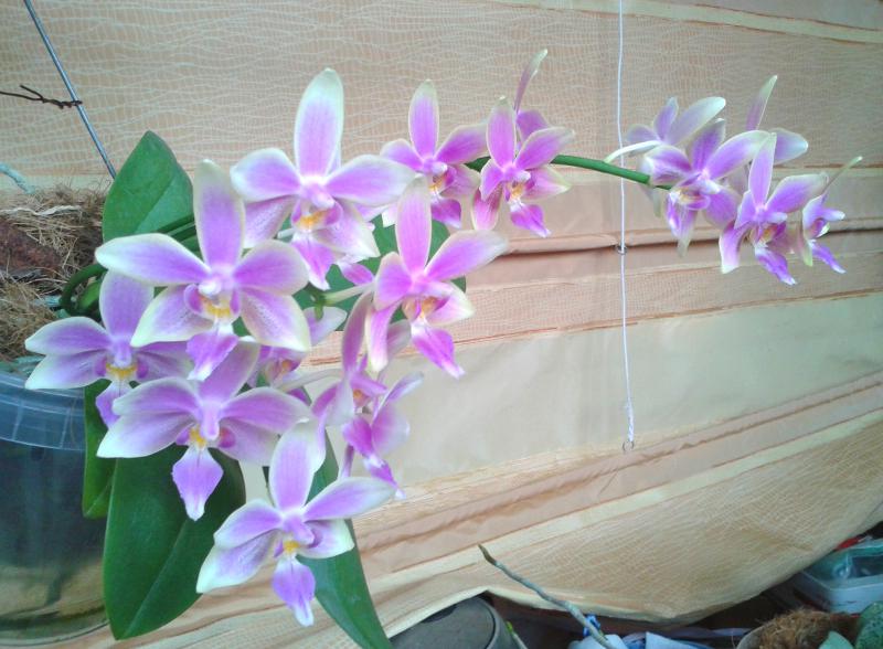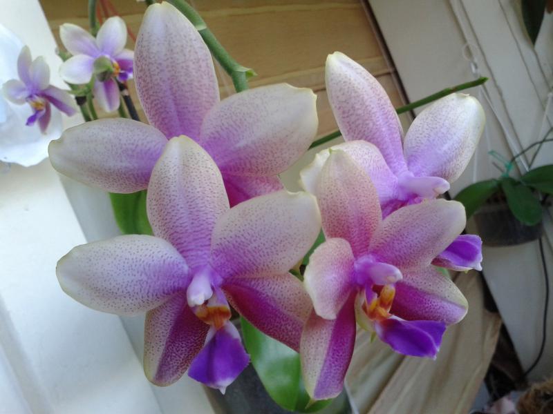 Меня опять радует P. David Lim брала с рук у нашей форумчанки, не давно обрезала цветоносы, так он неделю подумал и 3 выпустил, стоит на восточном окне, солнце до 11-00, чуть подзагорел, цветы получились ярче чем в прошлый раз, жил на стеллаже. Цветы крупные где то 5,5 см. аромата нет.