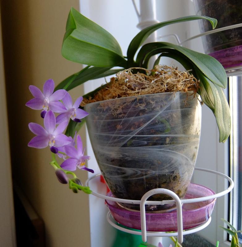 тут явно перепутали либо на ферме, либо при разборе - может, кто-то из заказчиков на форуме потерял...Не скажу наверняка, и размеры соотнести сложно, но либо природник phal. parishii/lobbii, либо гибриды с ними. Либо что-то из Lius Cute-ов, например, Lius Cute Angel.Подскажите кто это у меня такой, может знает кто