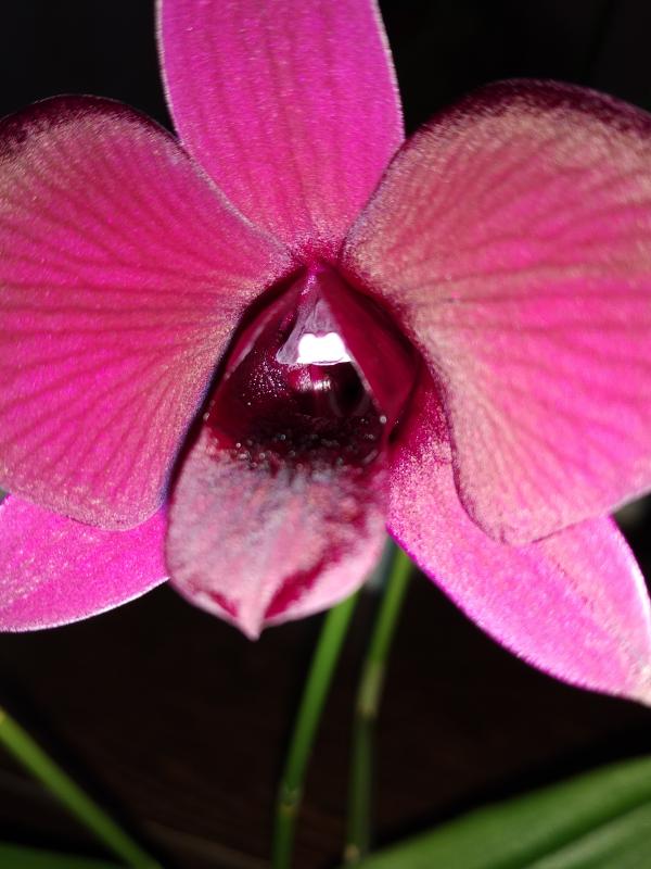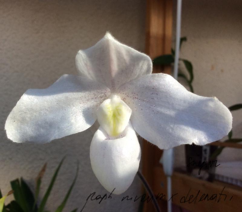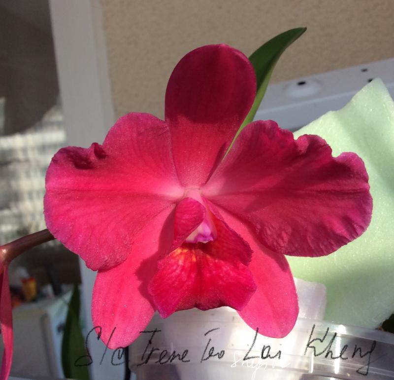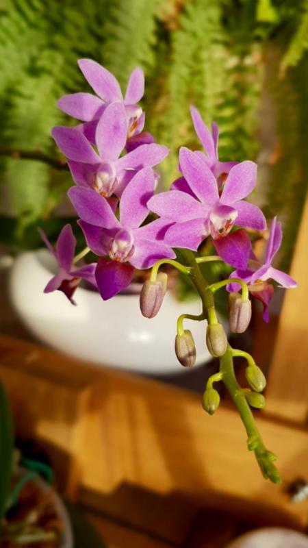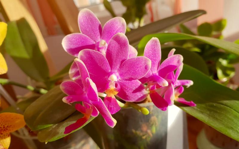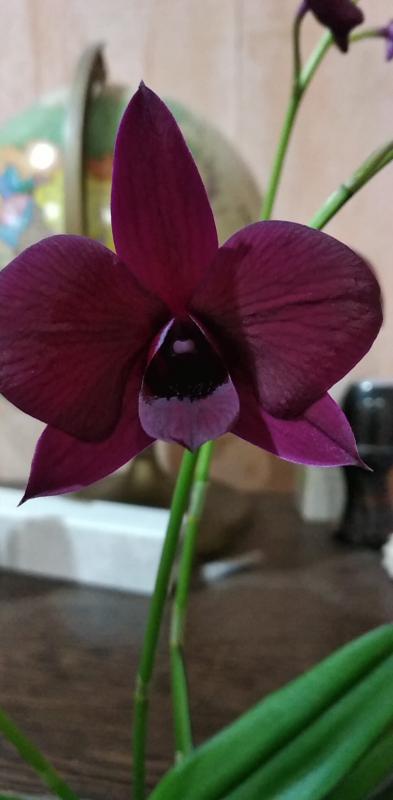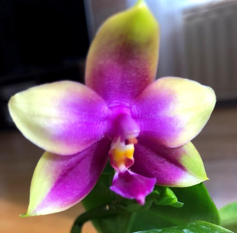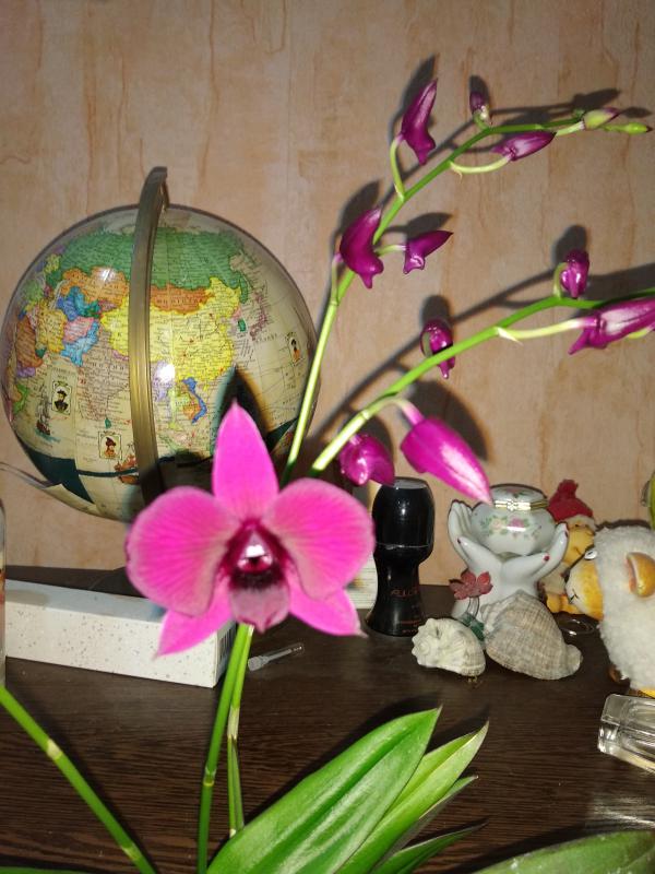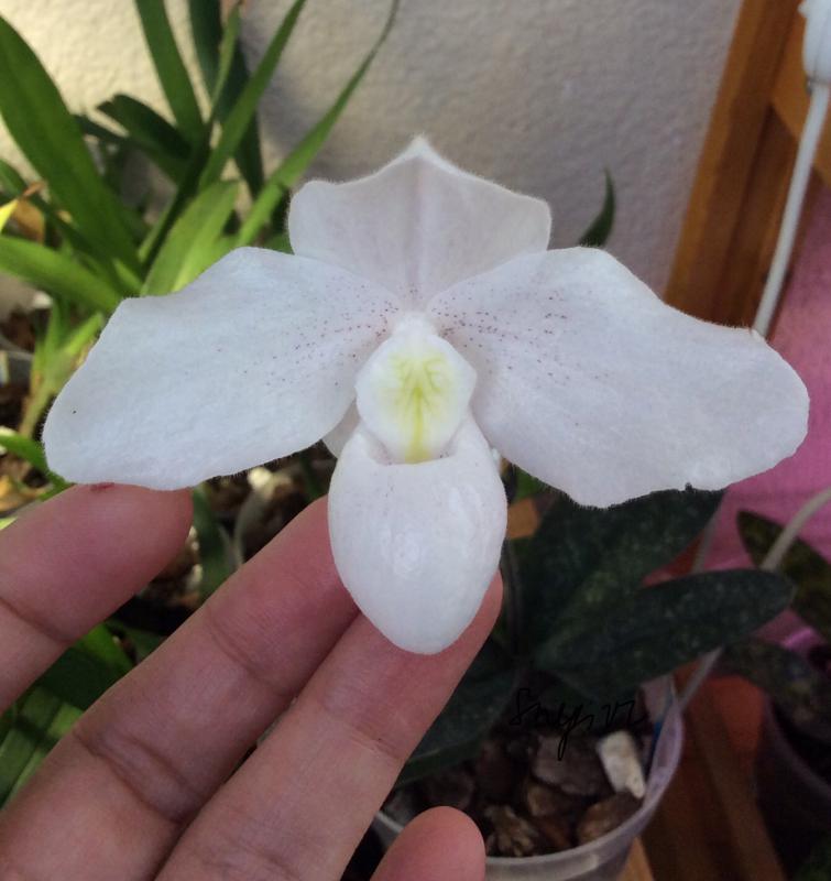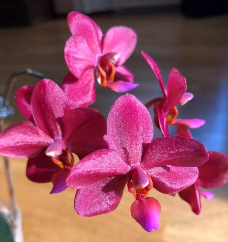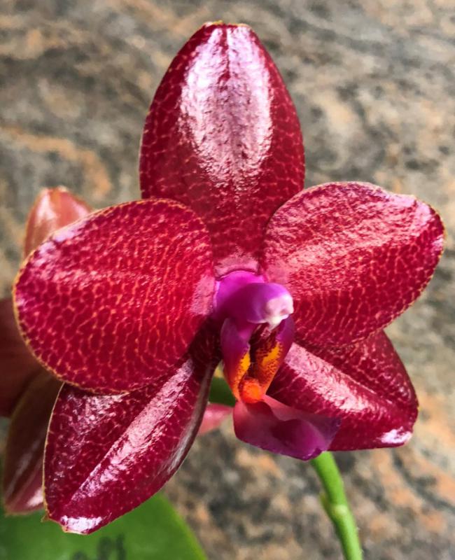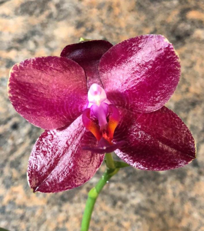 Ph. Ya-Yi Qin x Al Sun Tiger из спецпредложения 29708. Не в родителей. Говорят, природа отдыхает на детях :girl_expect: Цветок 5 см, не ароматный, верхний сепалий сломала случайно, пытаясь рассмотреть бутон в полуроспуске. Цвет в реале малиновый, цветок не плотный, очень нежный.